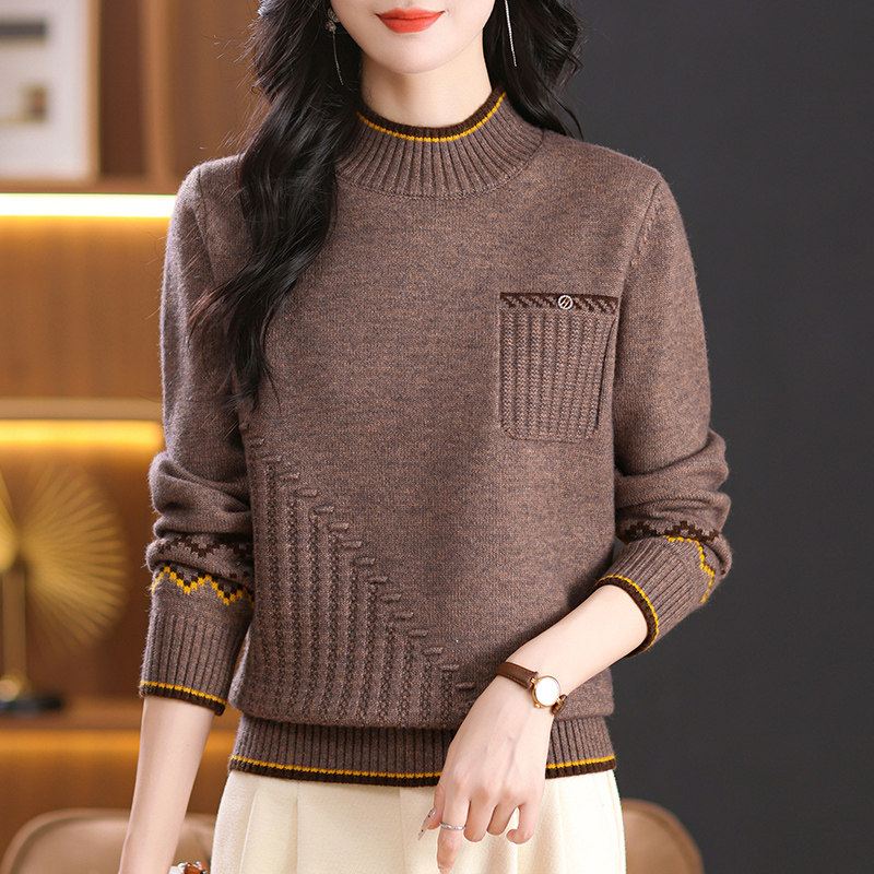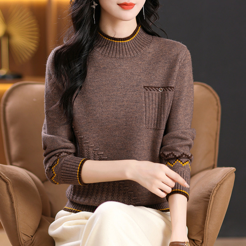 恒源祥半高领妈妈打底衫女秋冬内搭2025上衣装新款短款毛衣针织衫