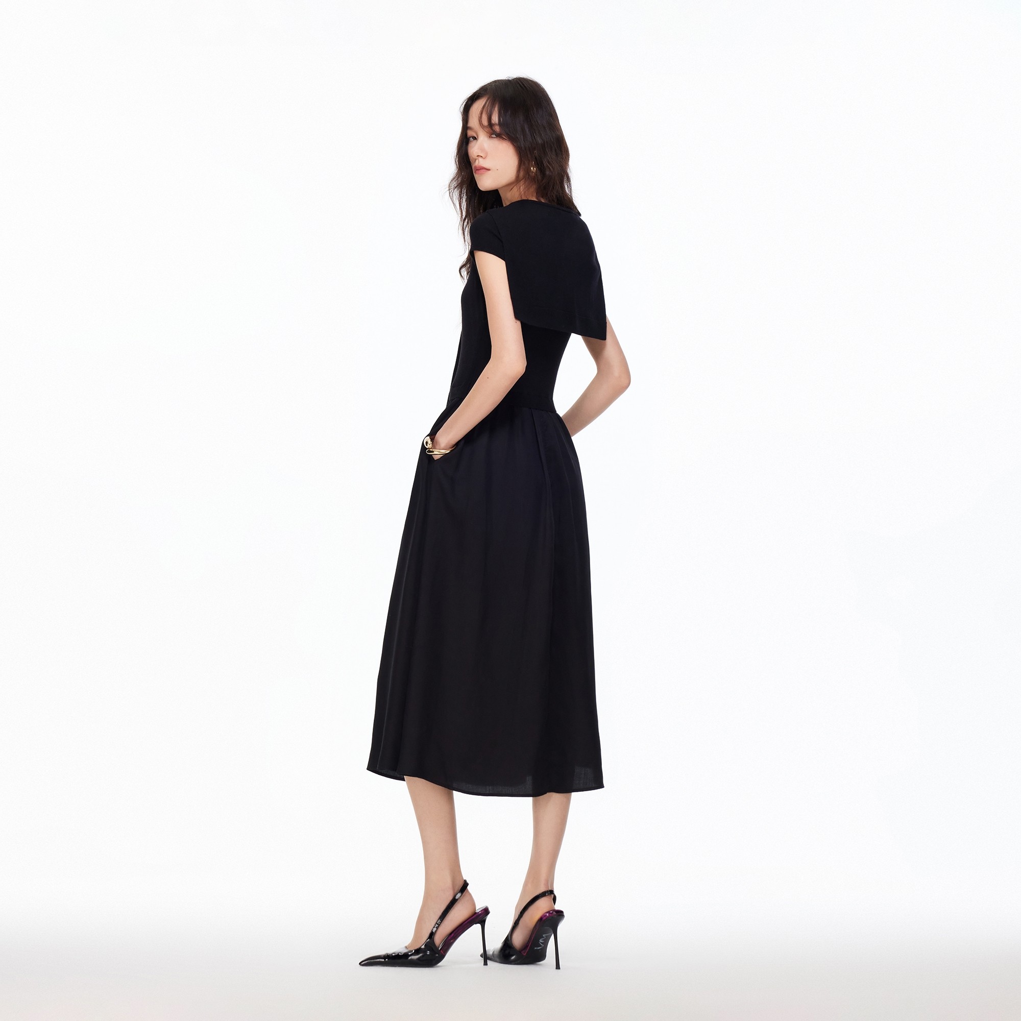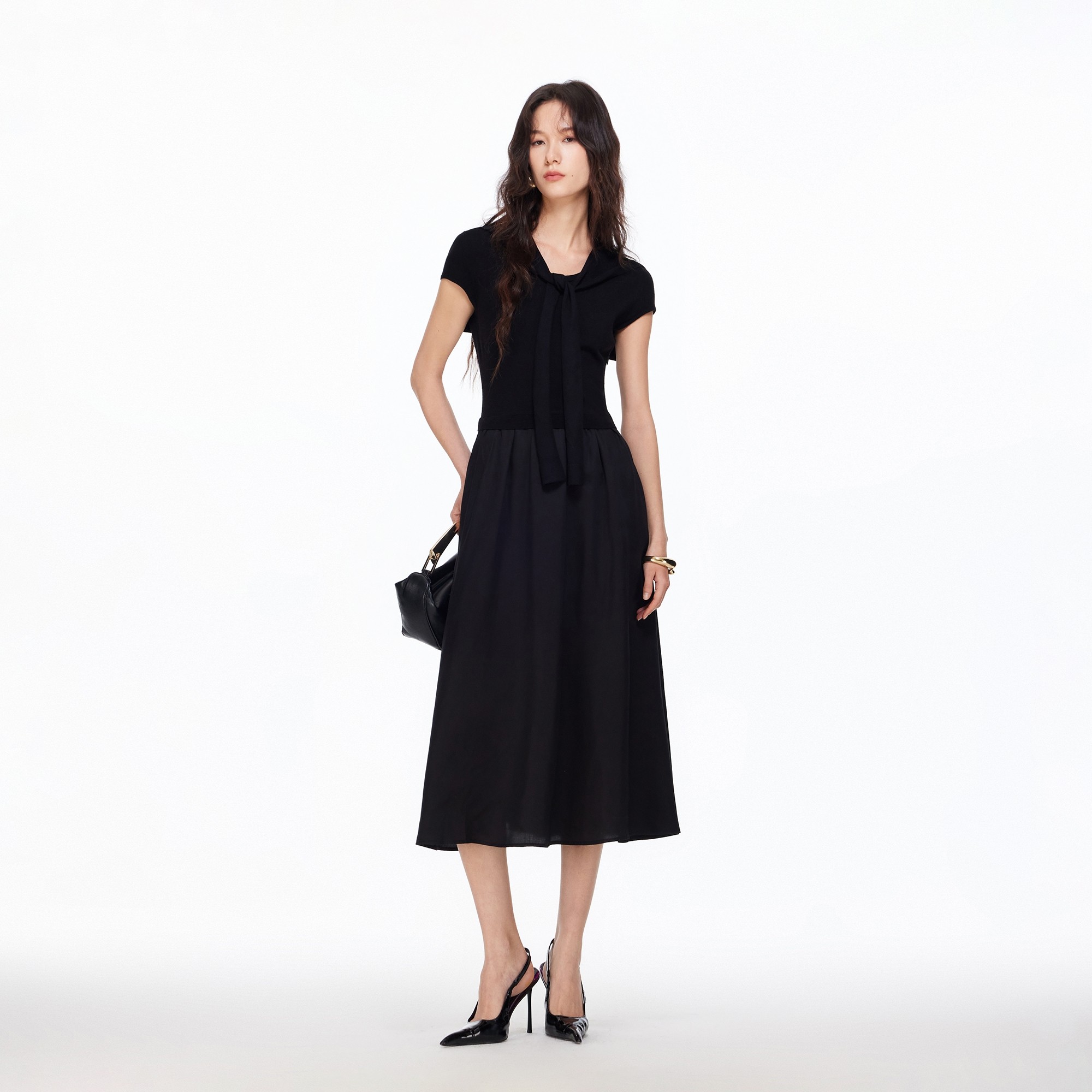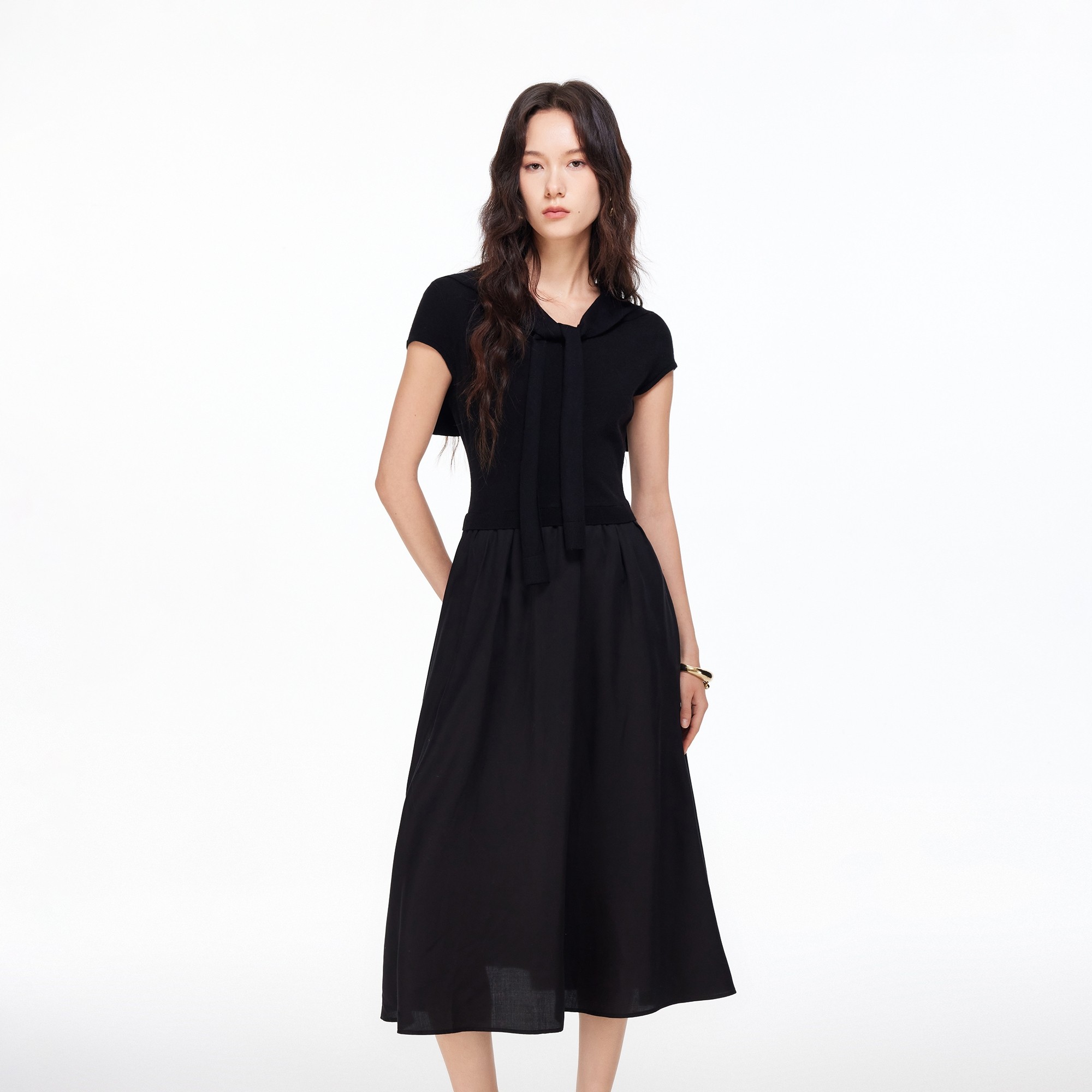 COCOBELLA简约气质黑色收腰极简风连衣裙女优雅短袖长裙FR3033-2