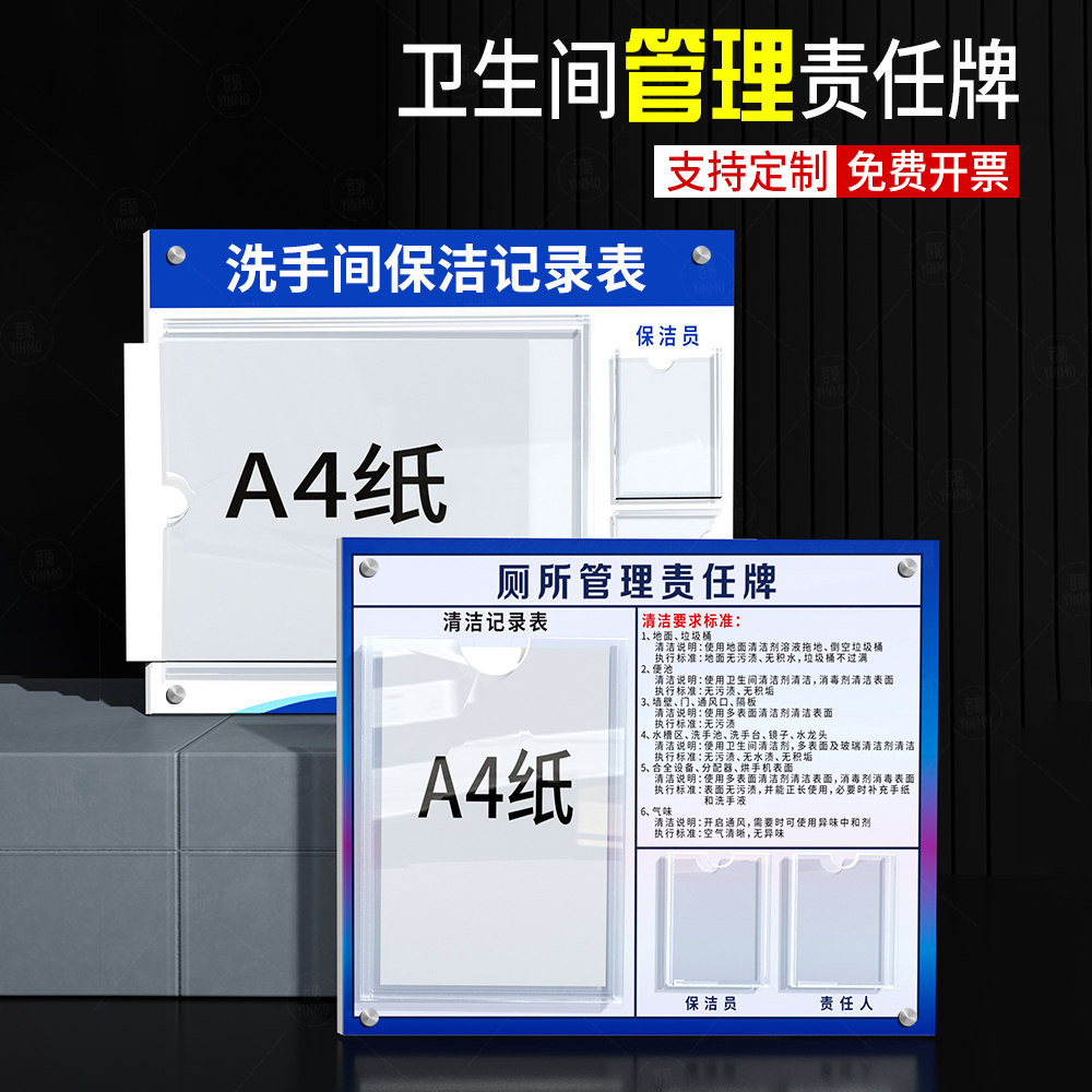厕所卫生清洁责任牌插卡式A4亚克力卡槽洗手间管理负责人员公示牌洗手保洁记录表洗手间清洁质量监督卡定制