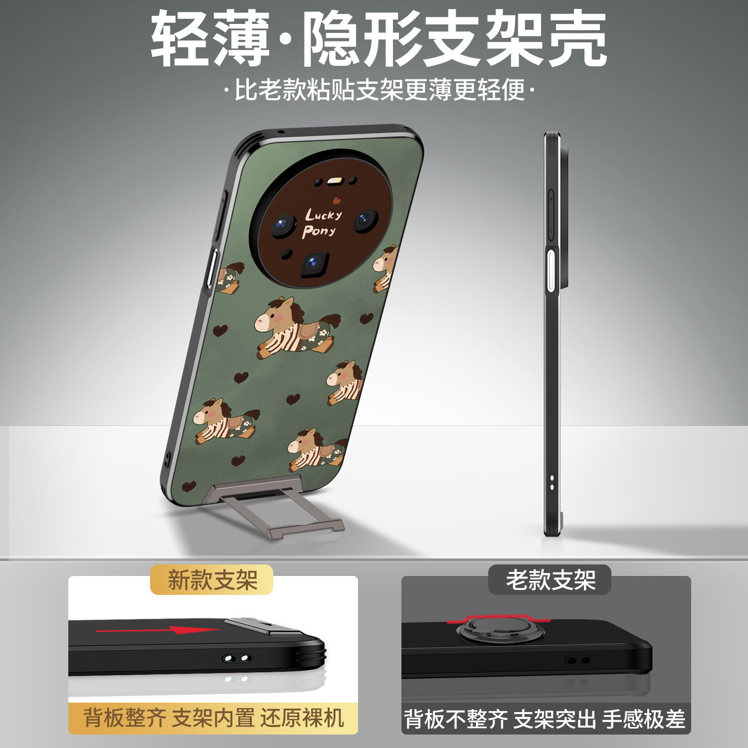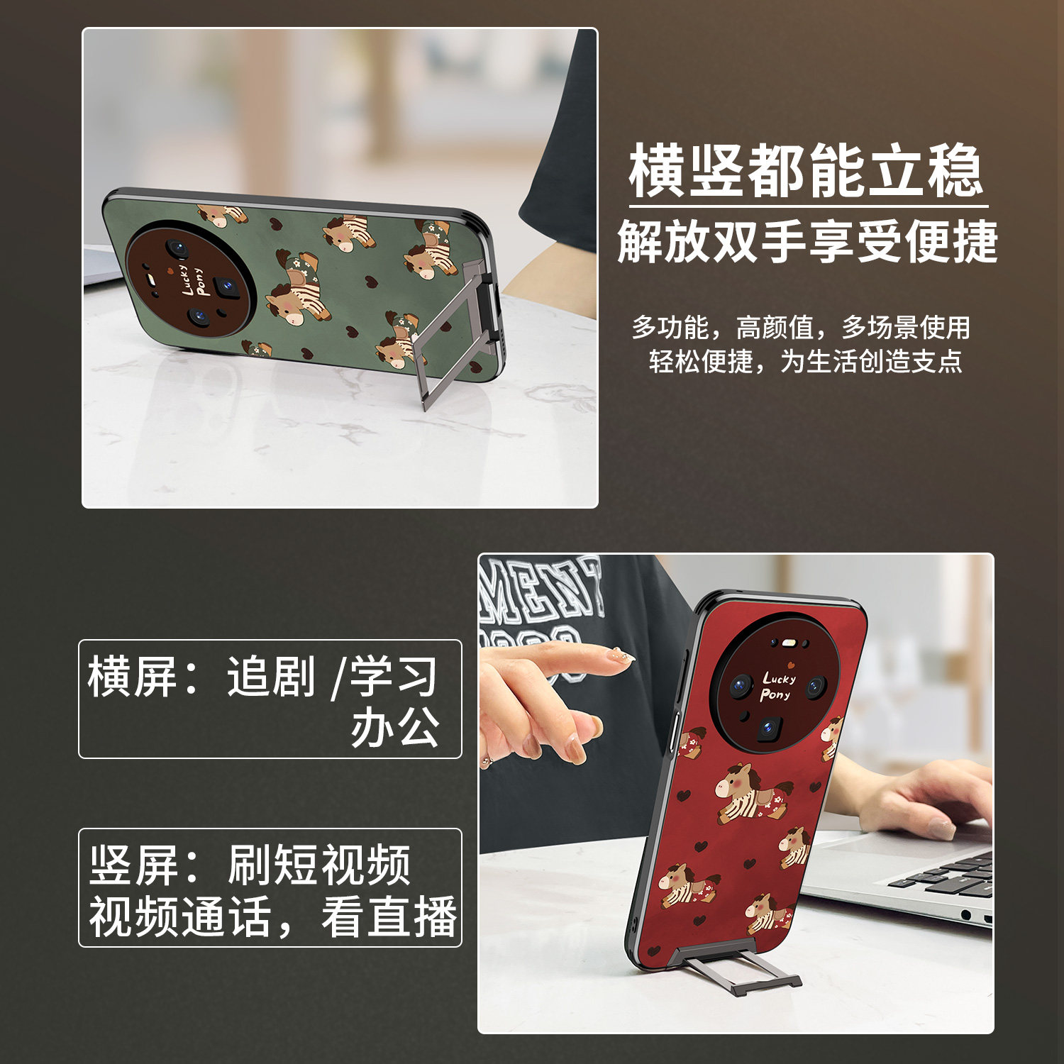 复古小马适用华为mate80手机壳隐形拉杆支架mate80pro全包防摔promax磨砂新年款马年红色本命年外壳保护套女