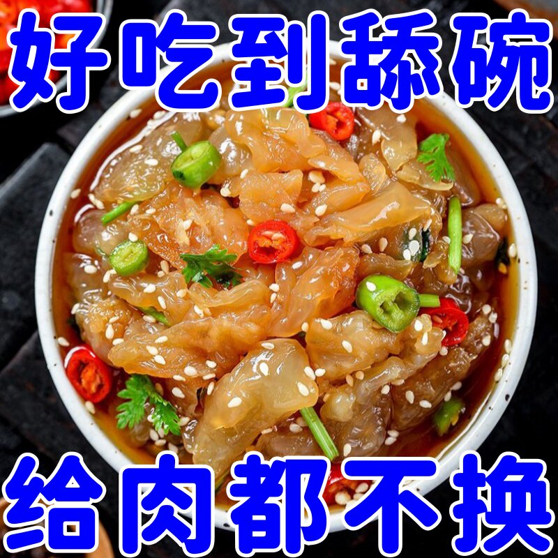 海蜇头开袋即食山东特产特级海蜇皮特产美食海蛰丝下酒凉拌菜海鲜