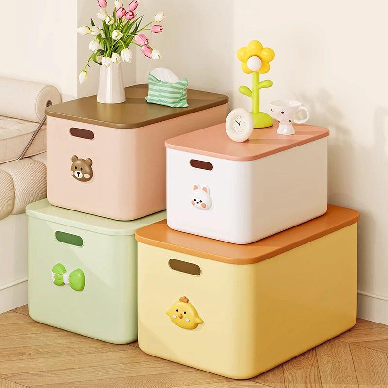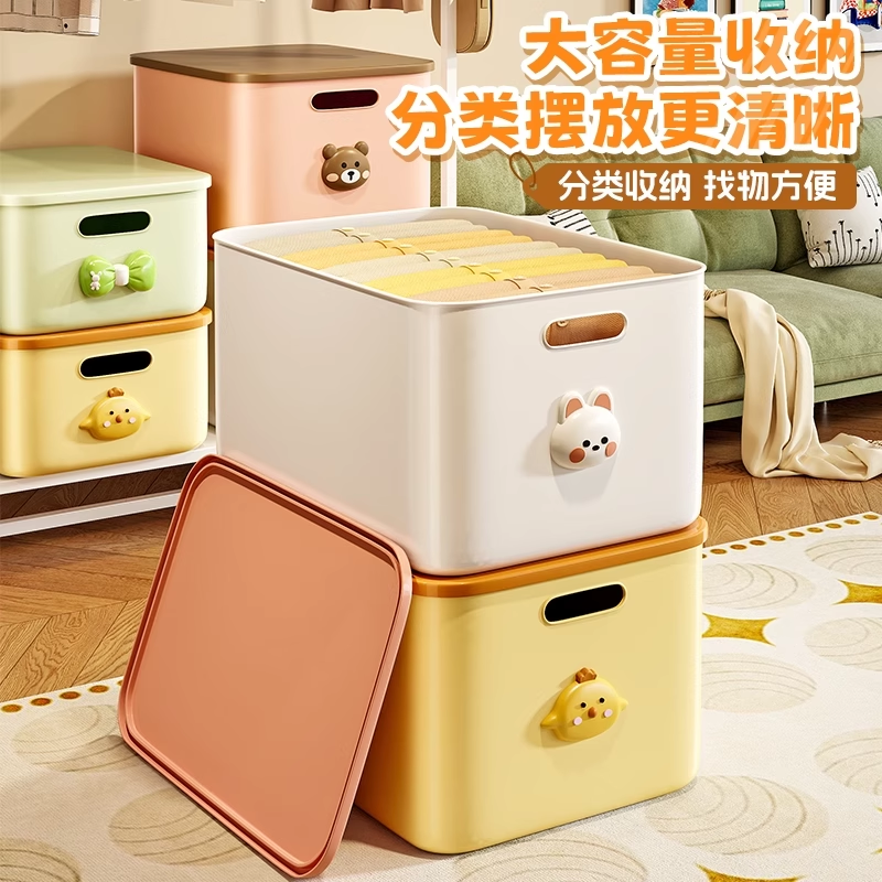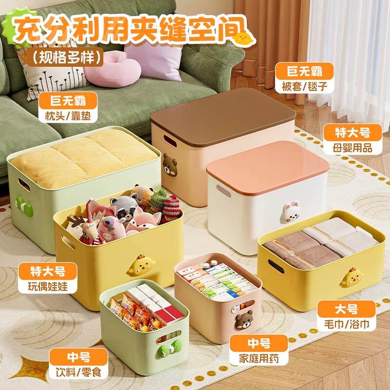 桌面收纳盒零食玩具杂物收纳箱筐家用长方形化妆品带盖储物盒
