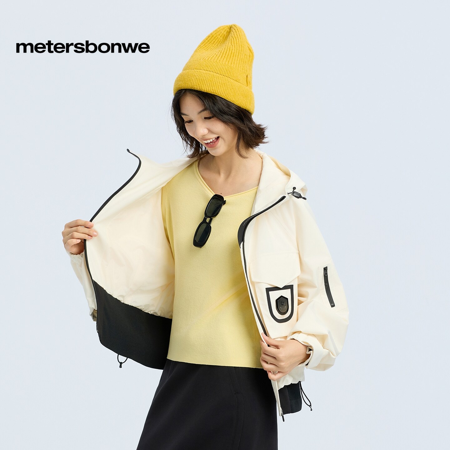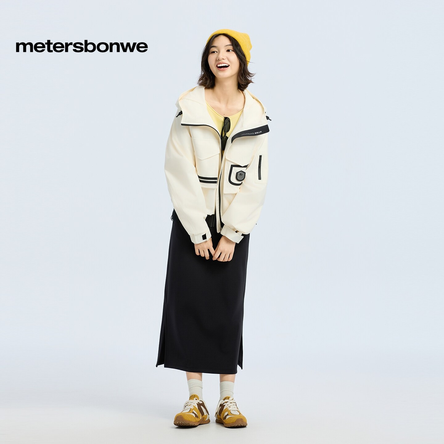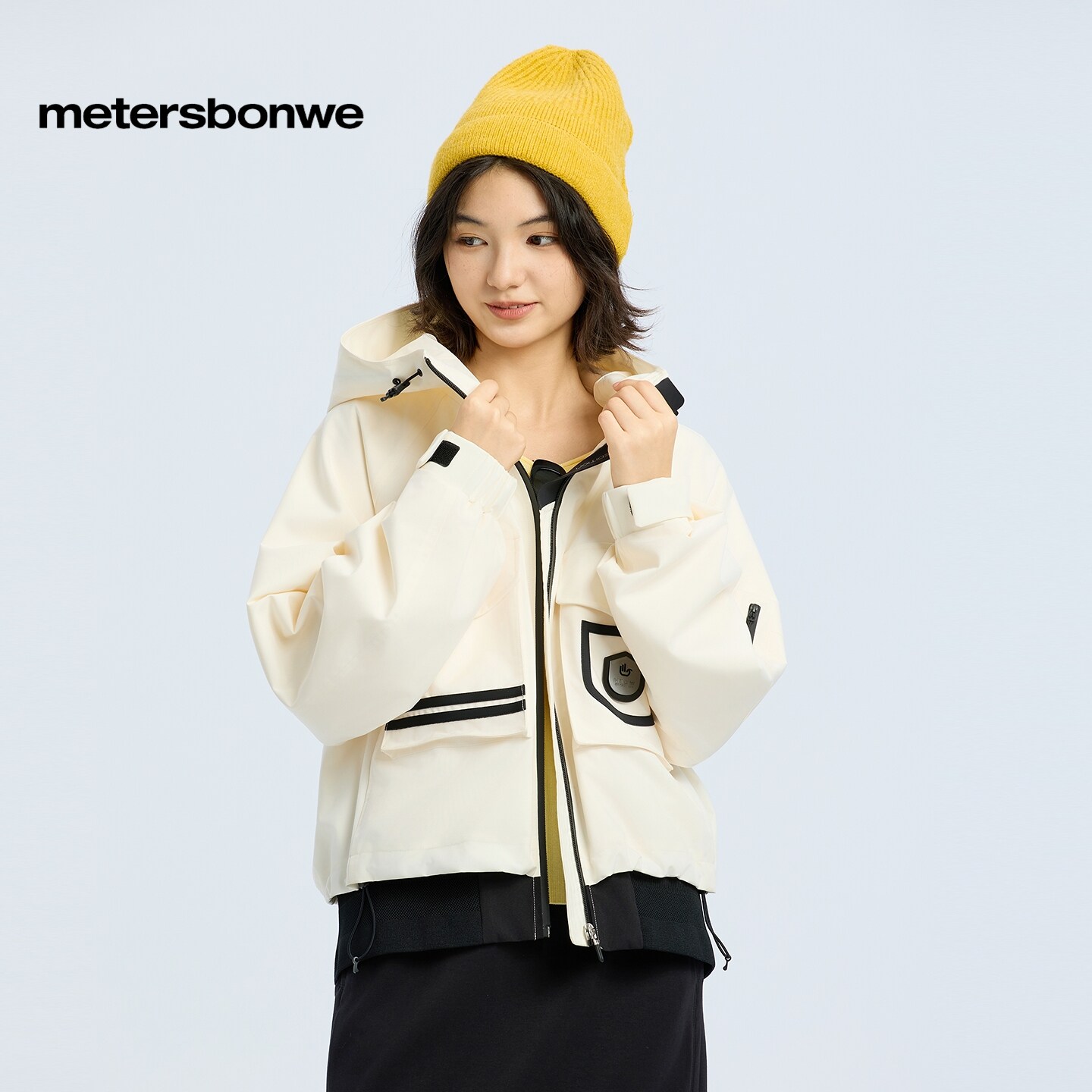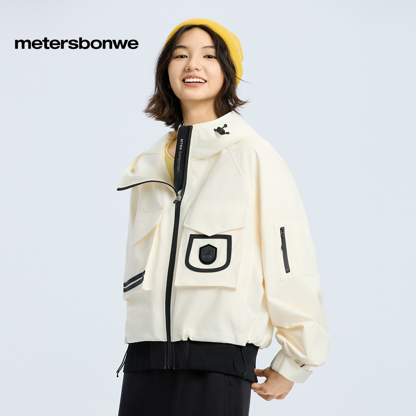 美特斯邦威夹克女春新款宽松流行连帽派克外套舒适短款通勤上衣