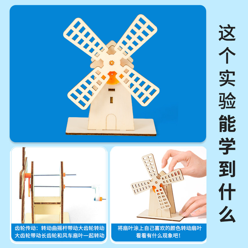 diy手摇风车小屋拼装模型科技小制作儿童手工教具材料包科学实验