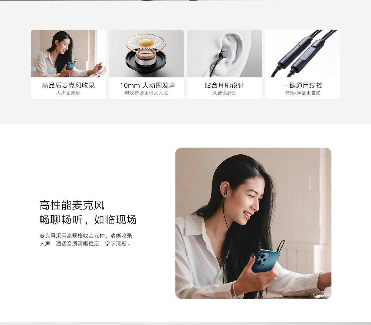 新品 小米有线耳机 运动入耳式3.5mm手机耳机通用一键线控 通话