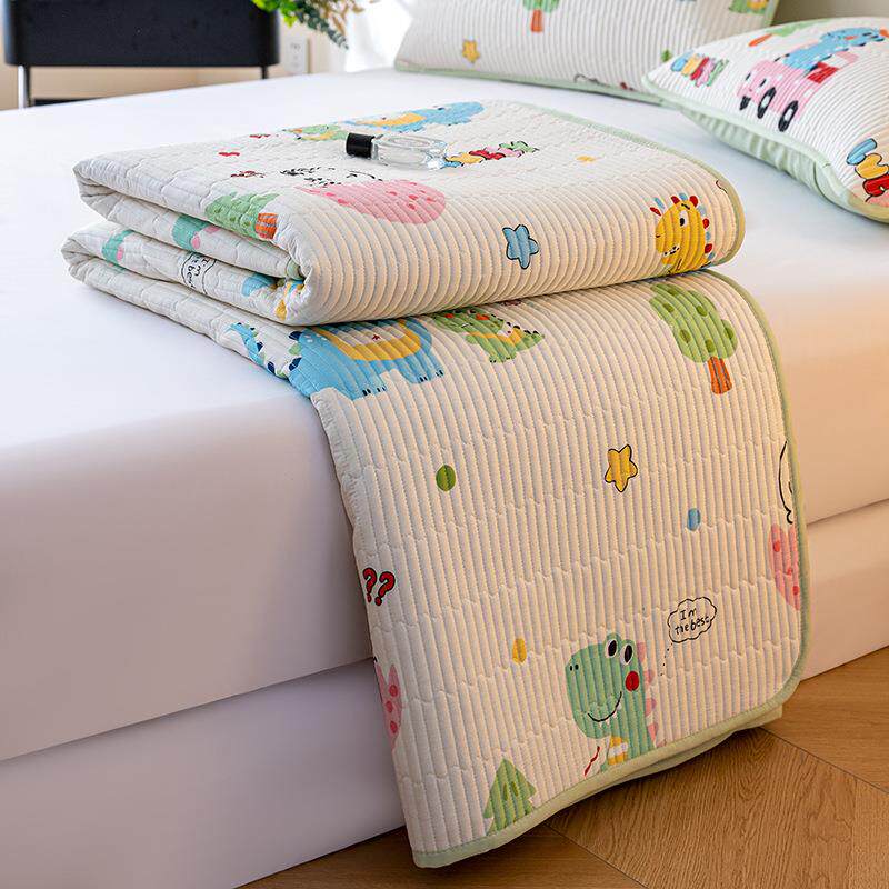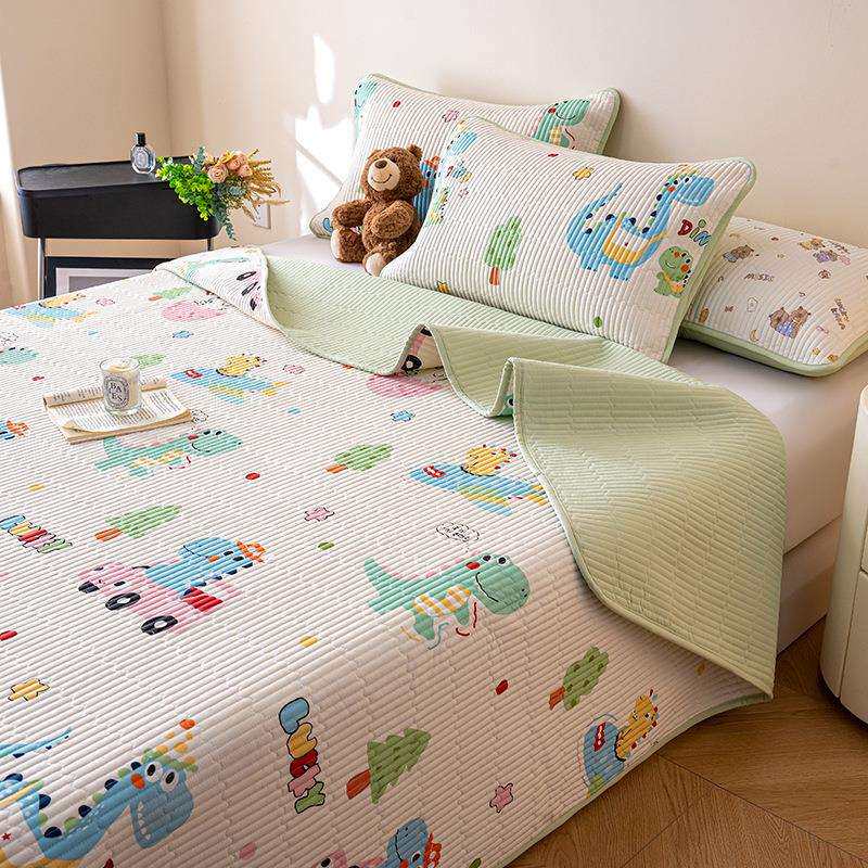 A类母婴级四季适用全棉床盖套件小清新水洗棉夹棉榻榻米防滑盖毯