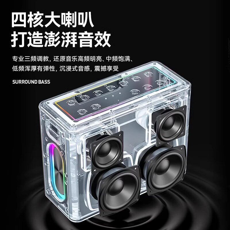 蓝牙小音箱300W户外k歌音响麦克风功放一体机广场舞低音炮家庭ktv