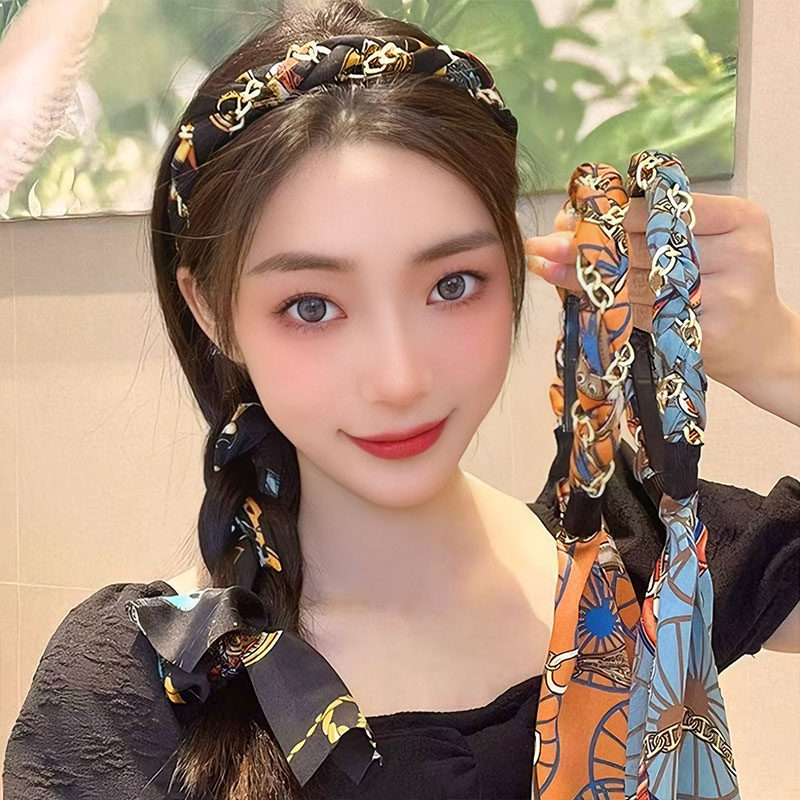 繁花飘带齿梳波浪高颅顶发箍正反两带复古宫廷头箍外出百搭头饰女