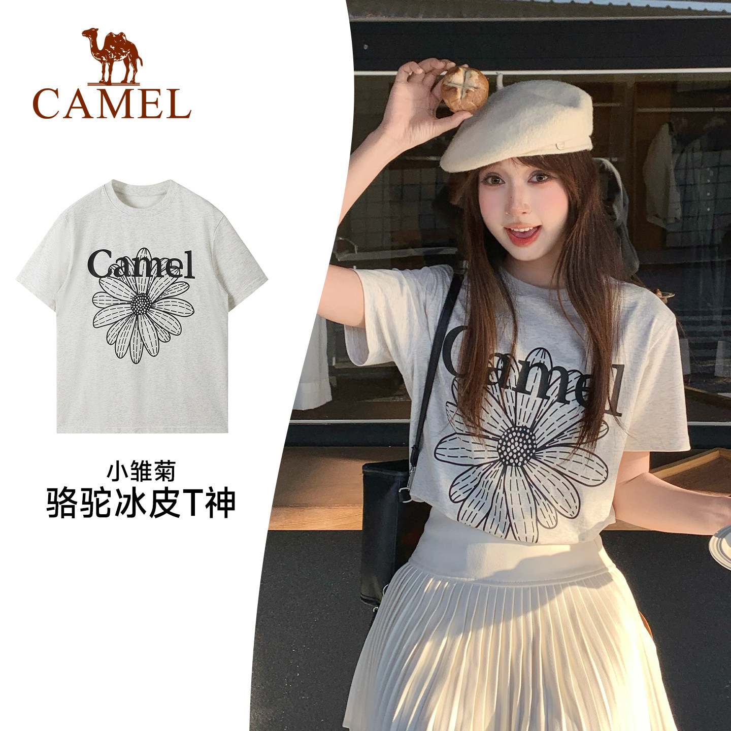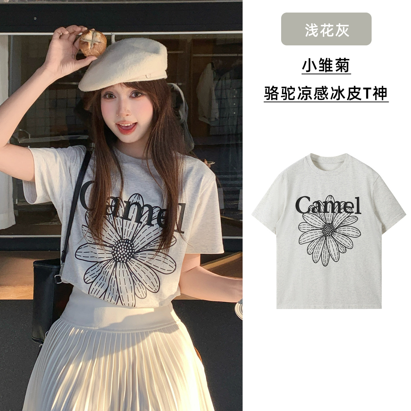 【好物体验专享】冰感T神骆驼短袖T恤小个子韩系小雏菊棉感上衣女