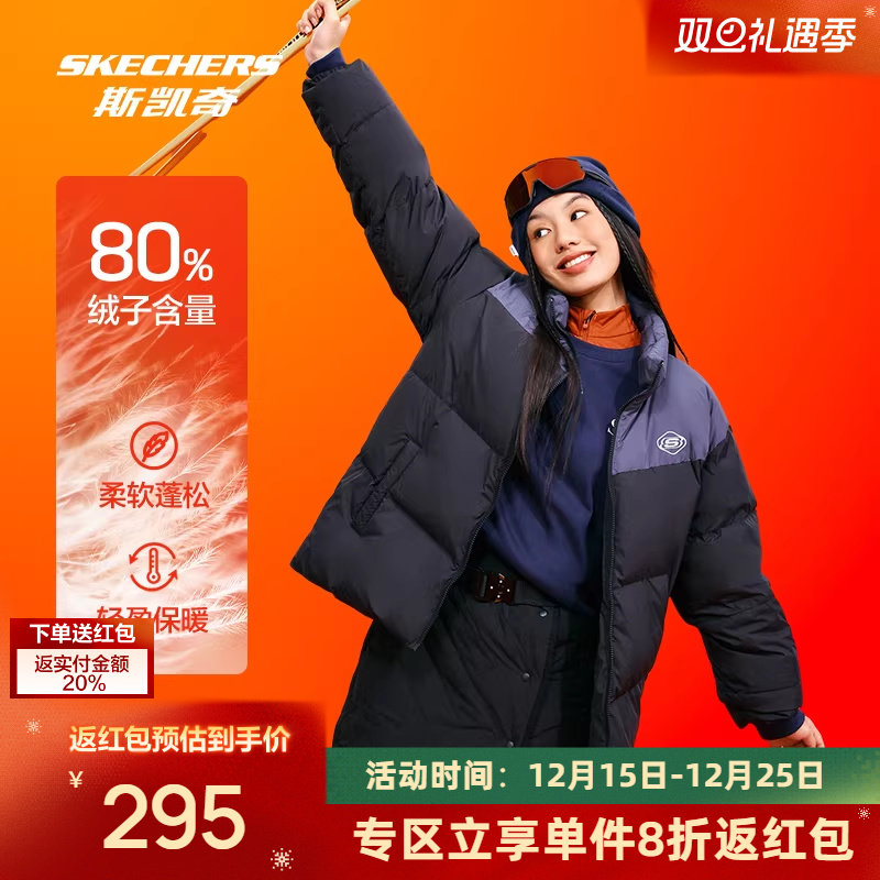 斯凯奇羽绒服男女同款情侣冬季拼色立领保暖短款防风锁热时尚百搭