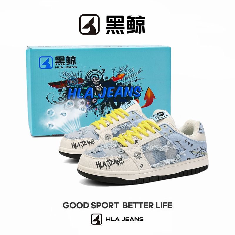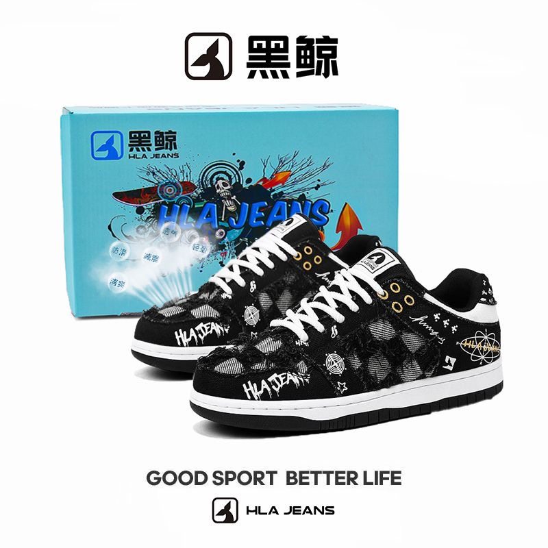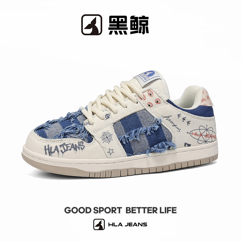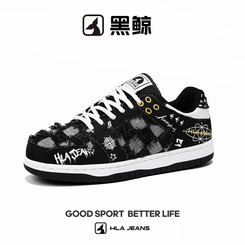 HLA JEANS/黑鲸板鞋美式潮流小众帆布鞋情侣款复古休闲拼色运动鞋