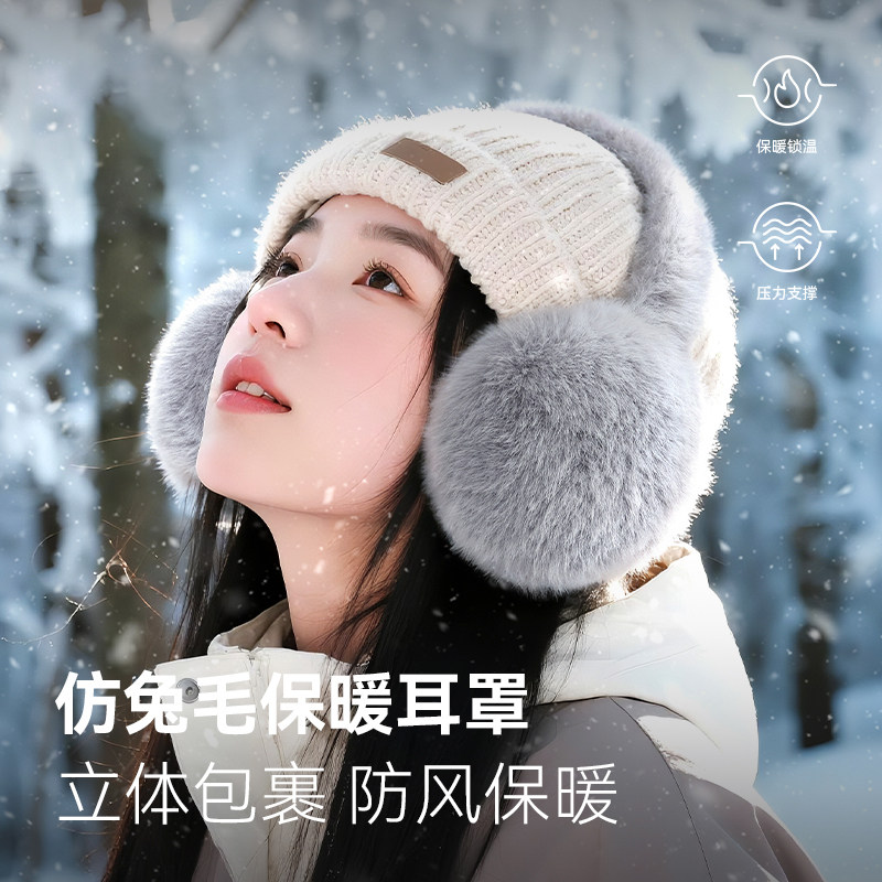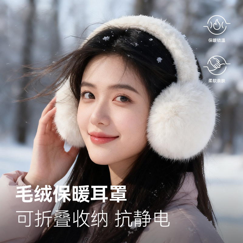 保暖耳罩女冬简约耳捂子耳朵套毛绒耳包学生折叠耳帽防寒白色护耳