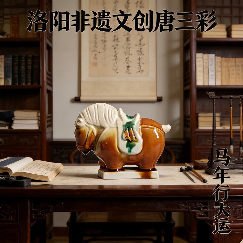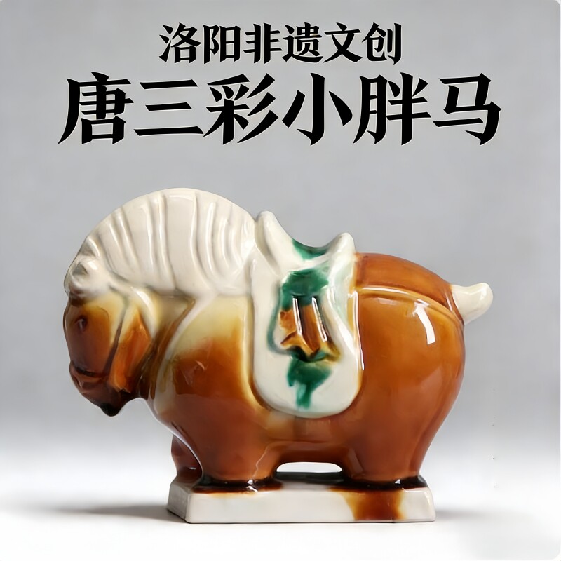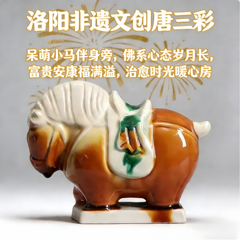 洛阳唐三彩陶瓷佛系胖马文创艺术品手办小胖马旅游伴手桌面装饰品