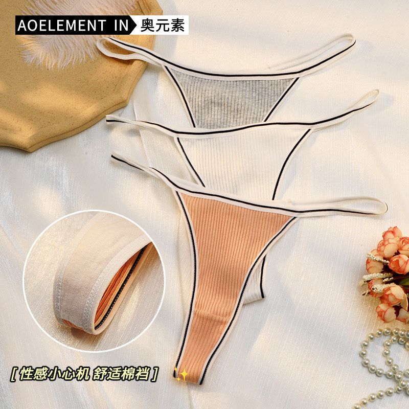 3条装女士内裤棉丁字裤一片式性感低腰无痕抗菌女生运动健身T字裤
