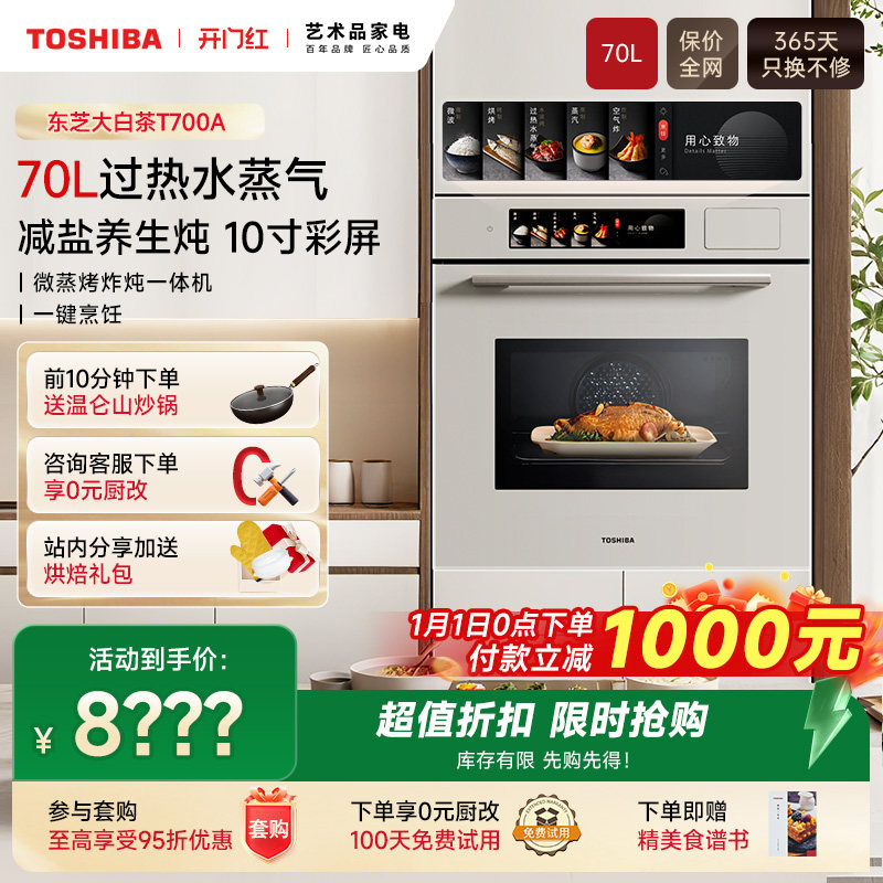东芝大白茶嵌入式微蒸烤炸一体机蒸烤箱家用水波炉微波炉T700A