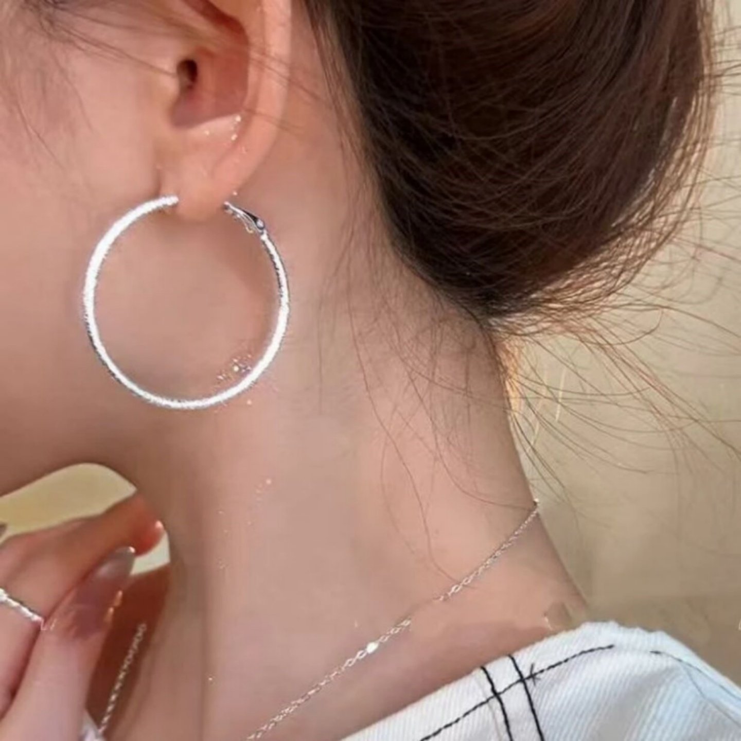 银色素圈耳环2025新款爆款轻奢高级感气质独特耳圈女耳钉圈圈耳饰