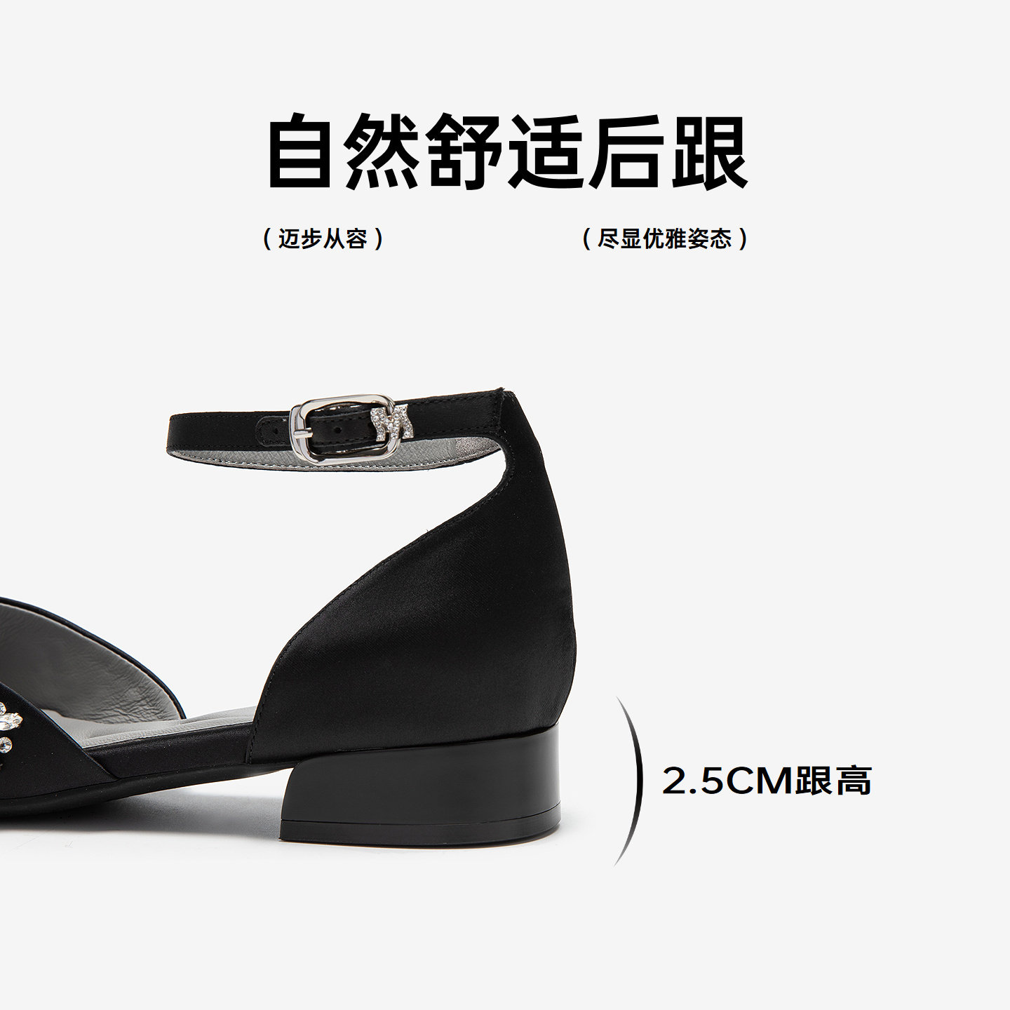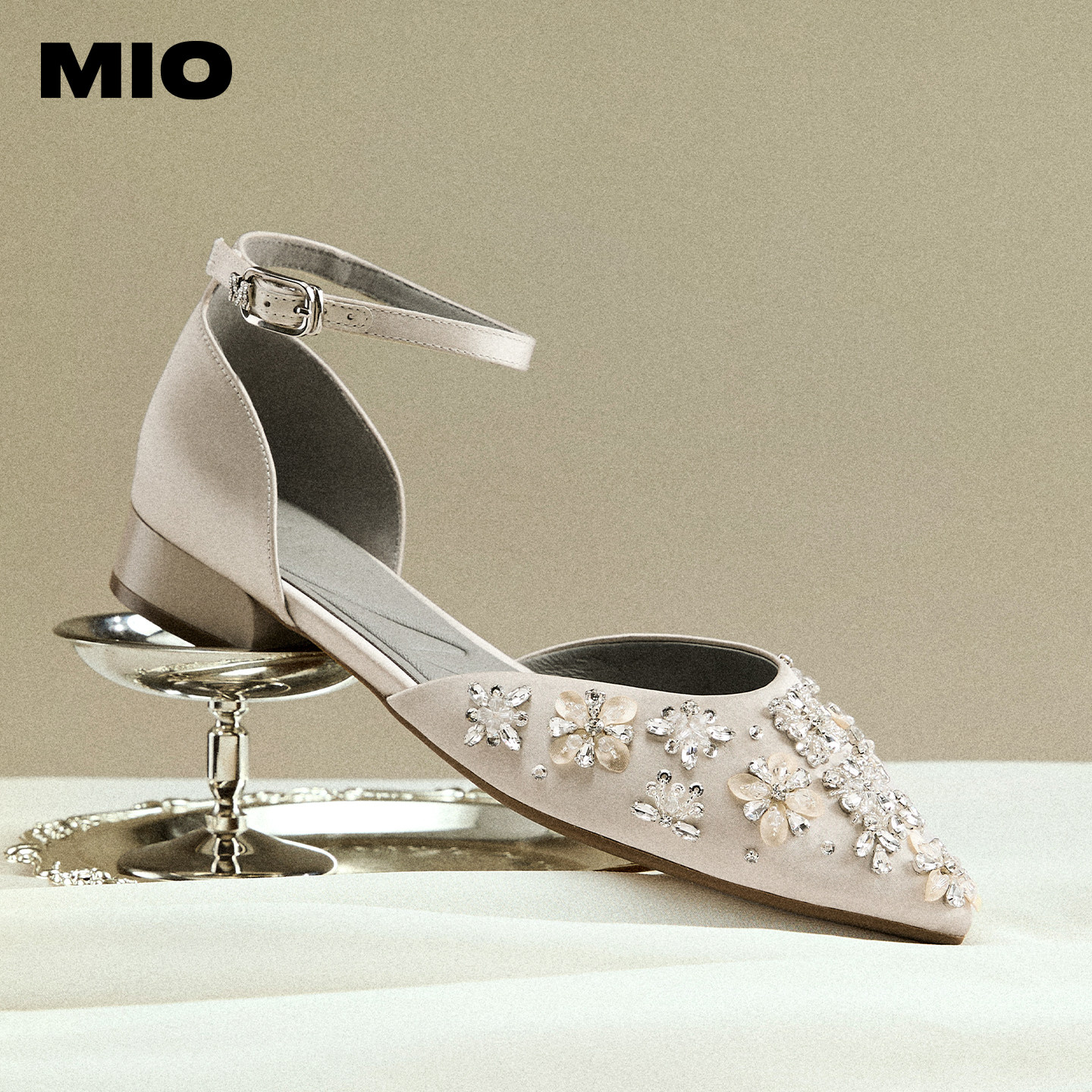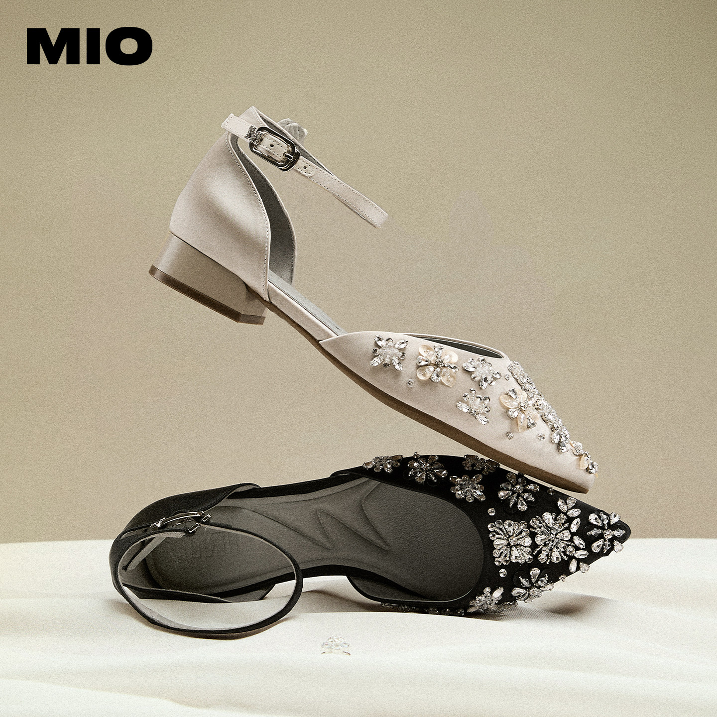 MIO米奥女鞋钻花2026夏季新款尖头一字扣单鞋低粗跟婚鞋时装凉鞋