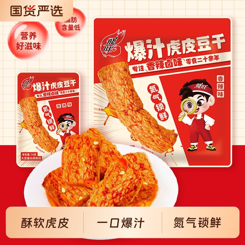 飞旺豆干爆汁虎皮湖南特产解馋麻辣豆腐干网红休闲零食小吃辣味