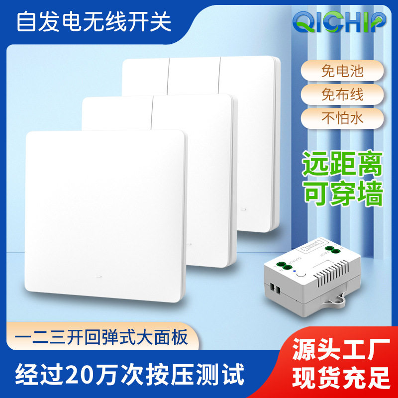 一二三开复位式免电池自发电开关家用免布线无线面板路灯遥控开关