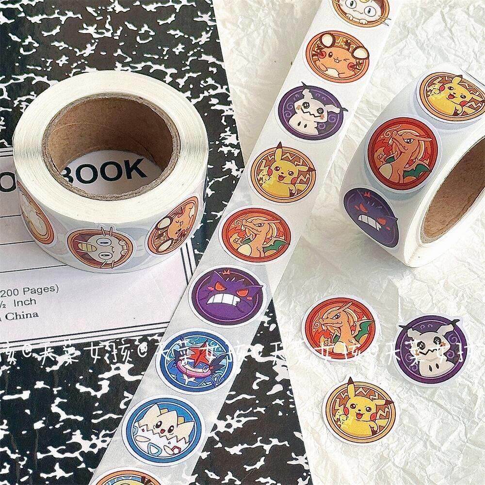 神奇宝贝卷卷贴纸日系动漫可爱皮卡丘耿鬼圆点贴DIY封口贴