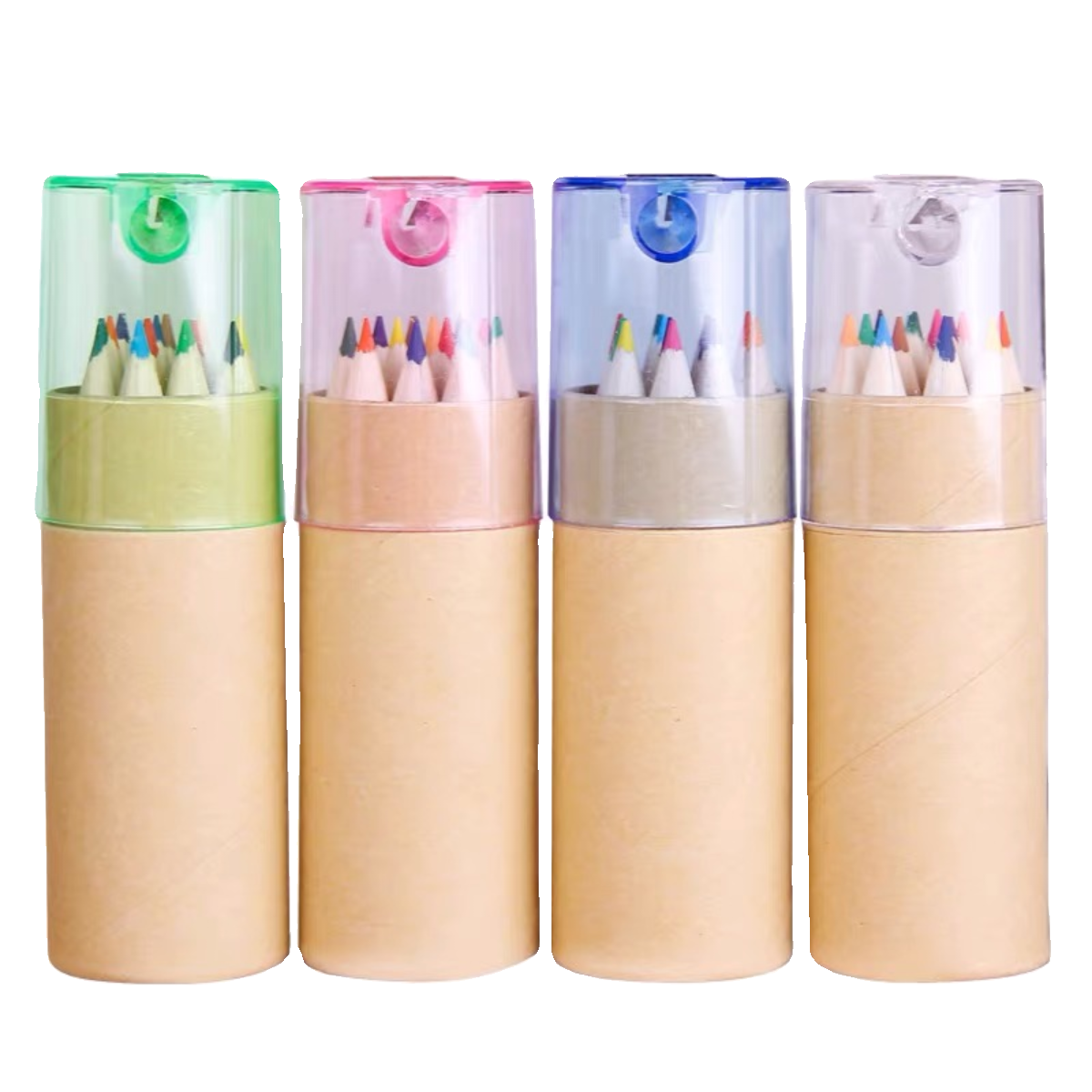 牛皮桶装彩色铅笔定制印logo原木12色画笔招生宣传小礼品61儿童节