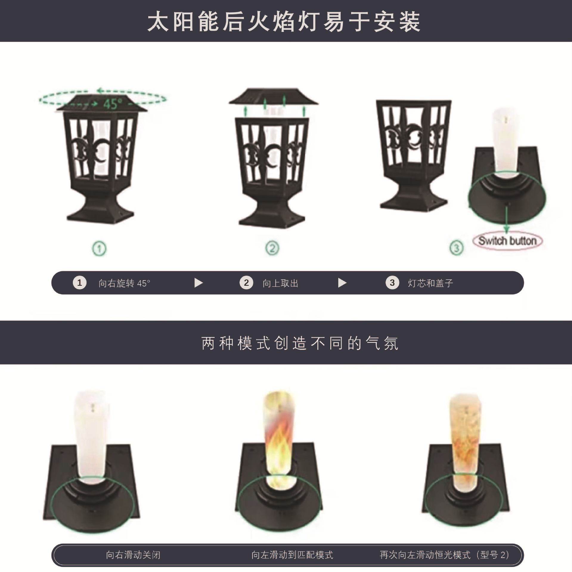 太阳能柱头灯38LED火焰户外壁灯围墙柱子院墙灯外花园别墅庭院
