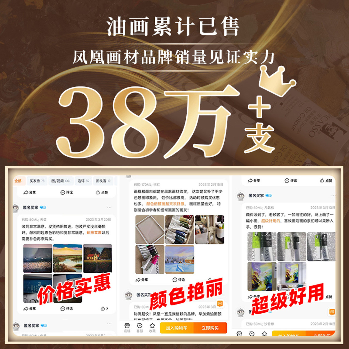 凤凰画材油画颜料套装50/170ML油画框板白色美术生画画涂料专业
