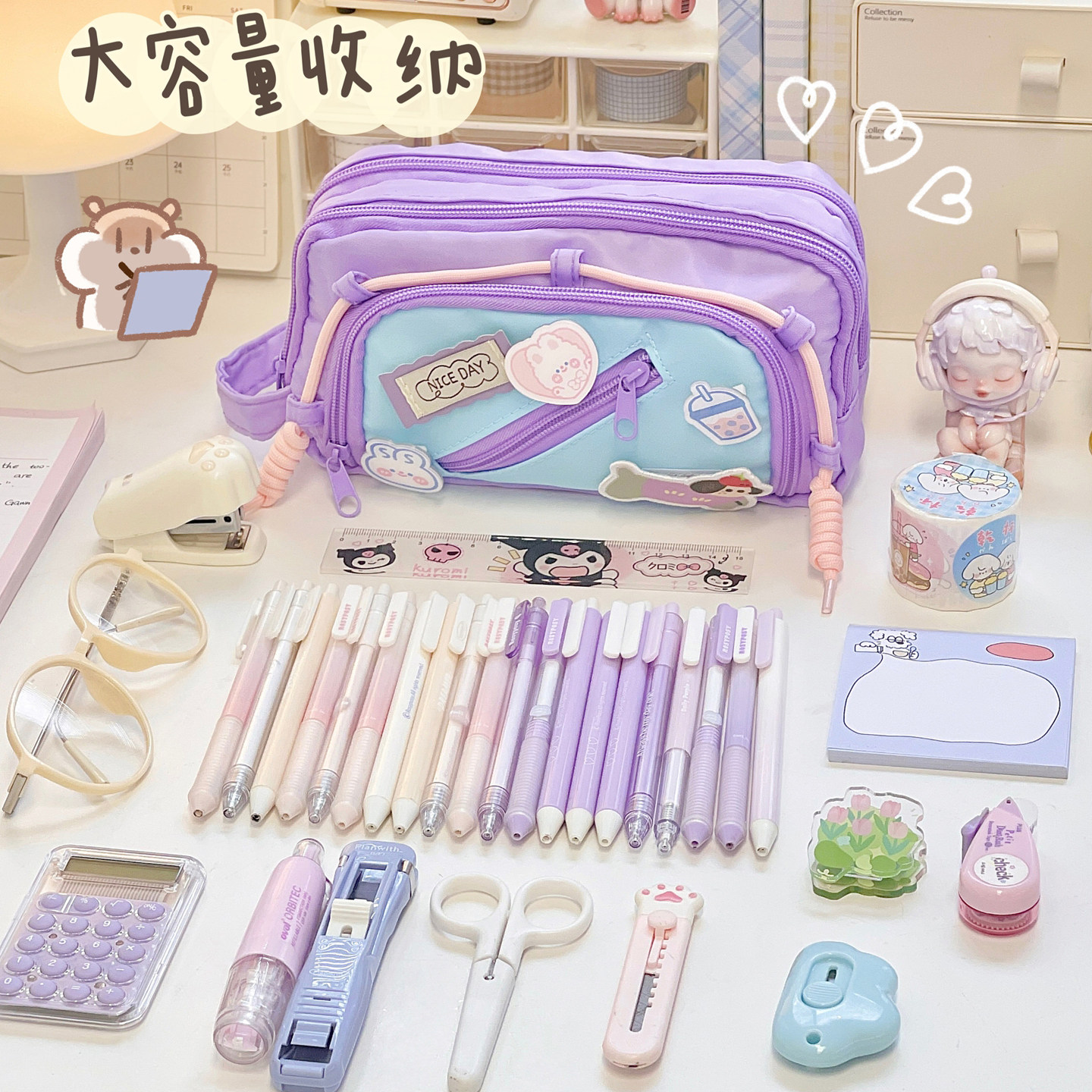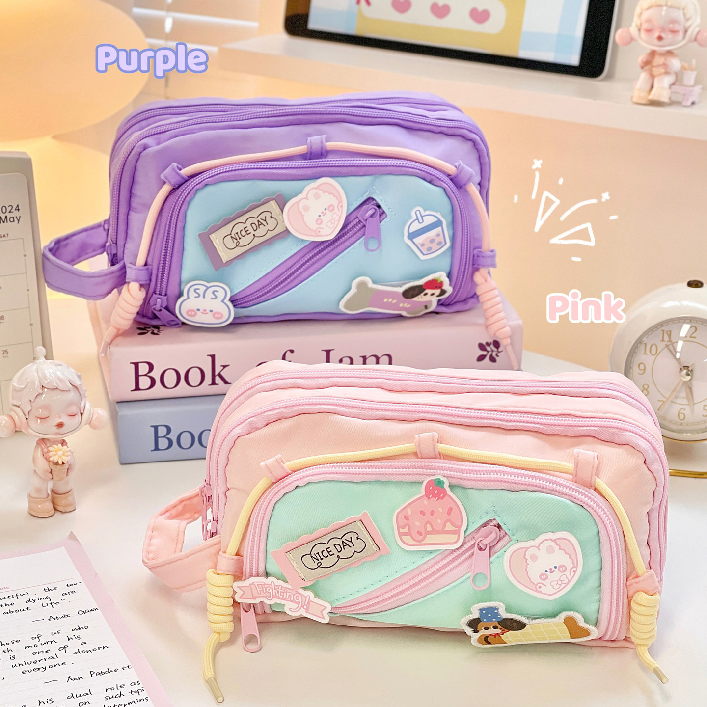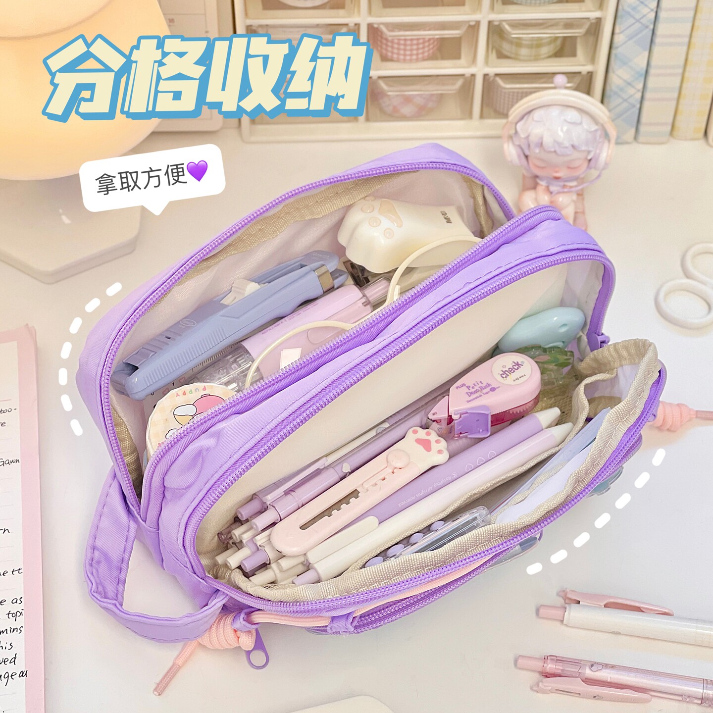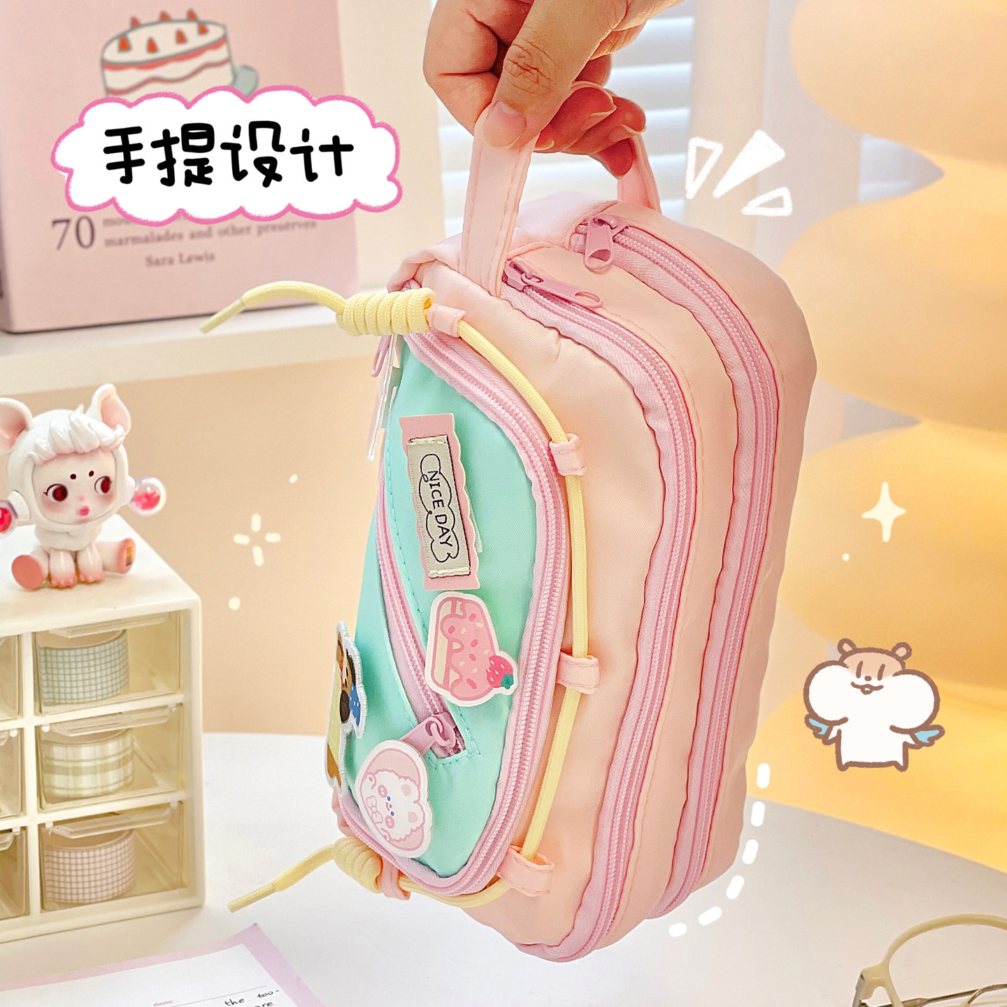 可爱撞色笔袋in风高颜值多巴胺小学生大容量初中文具袋铅笔盒女孩