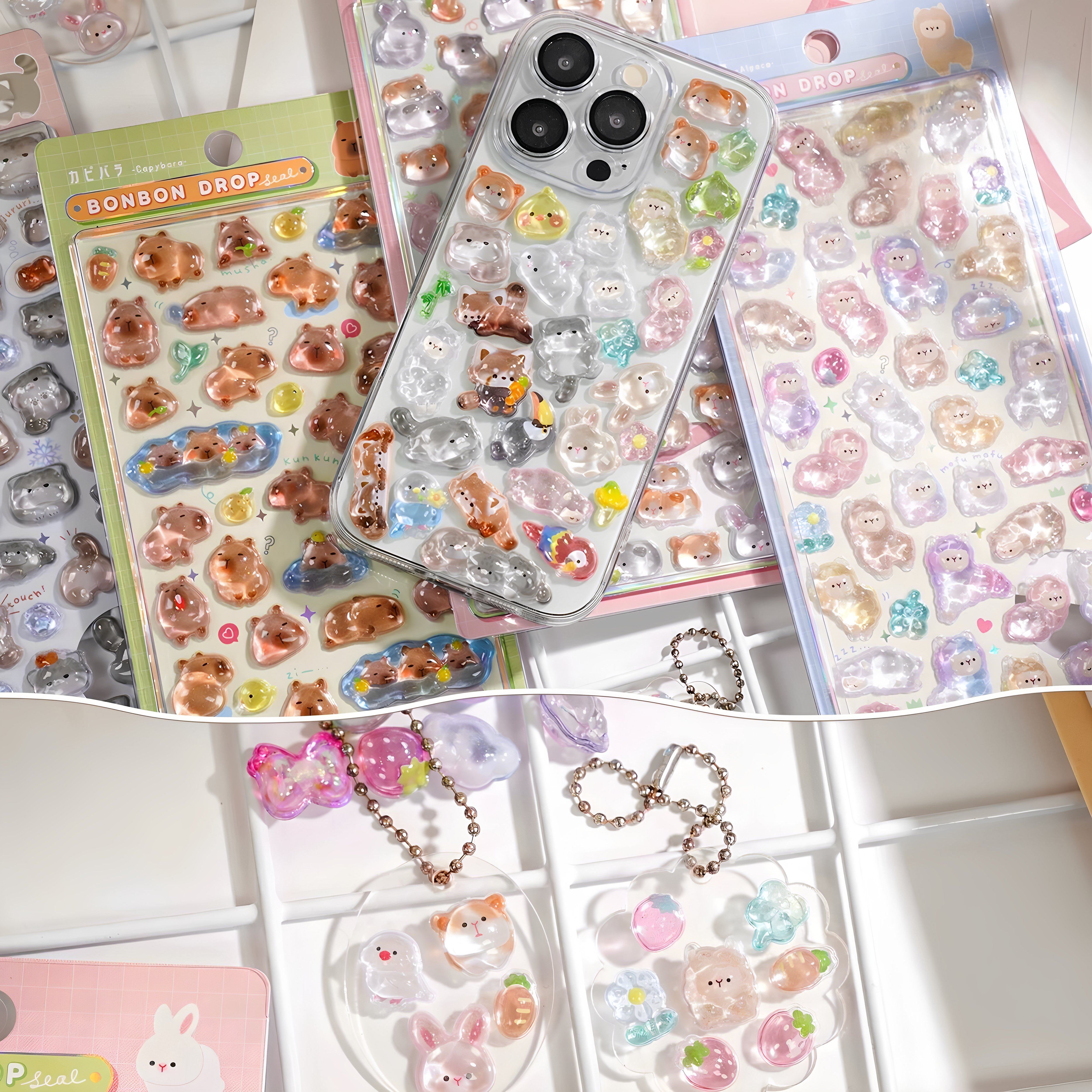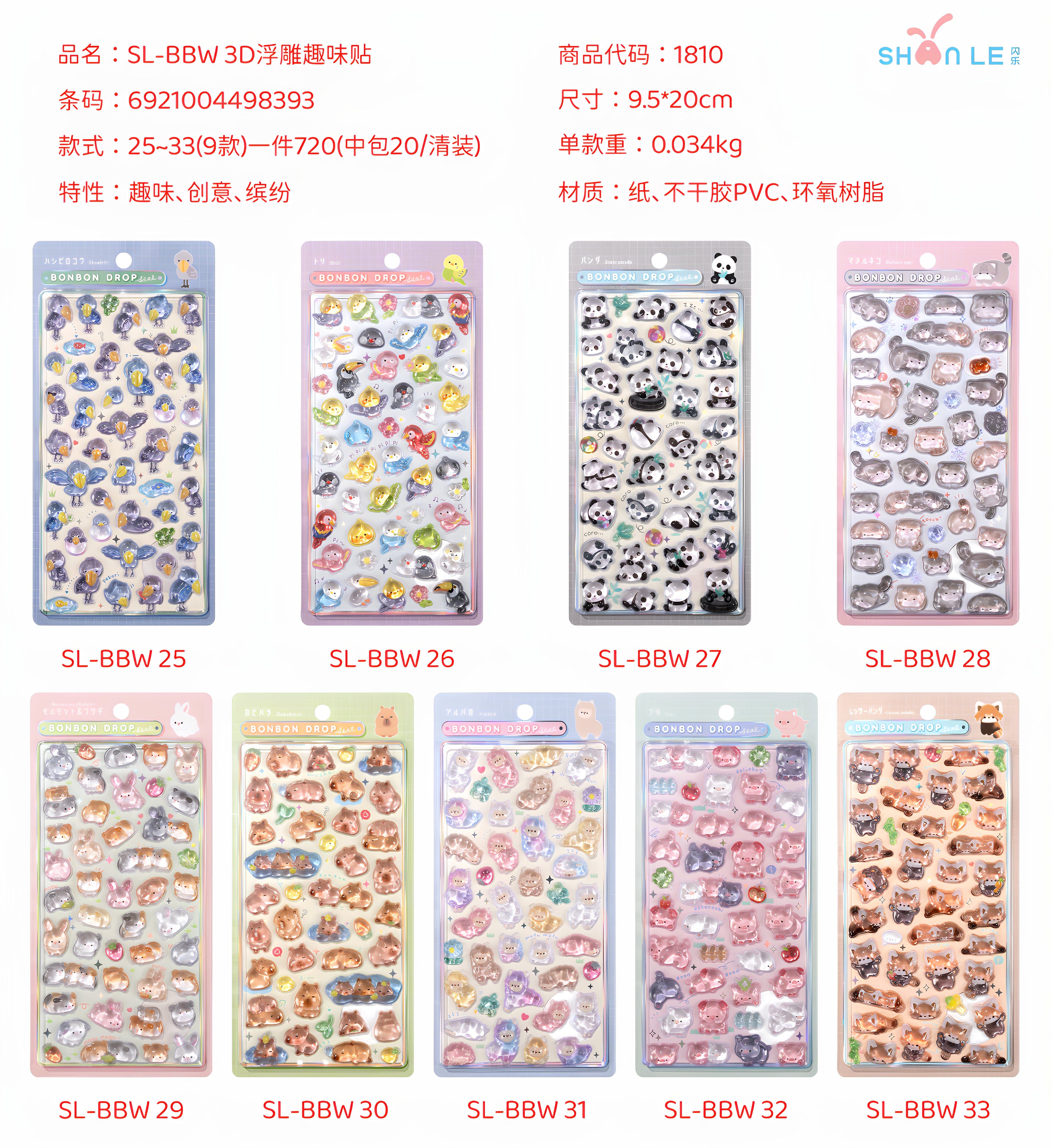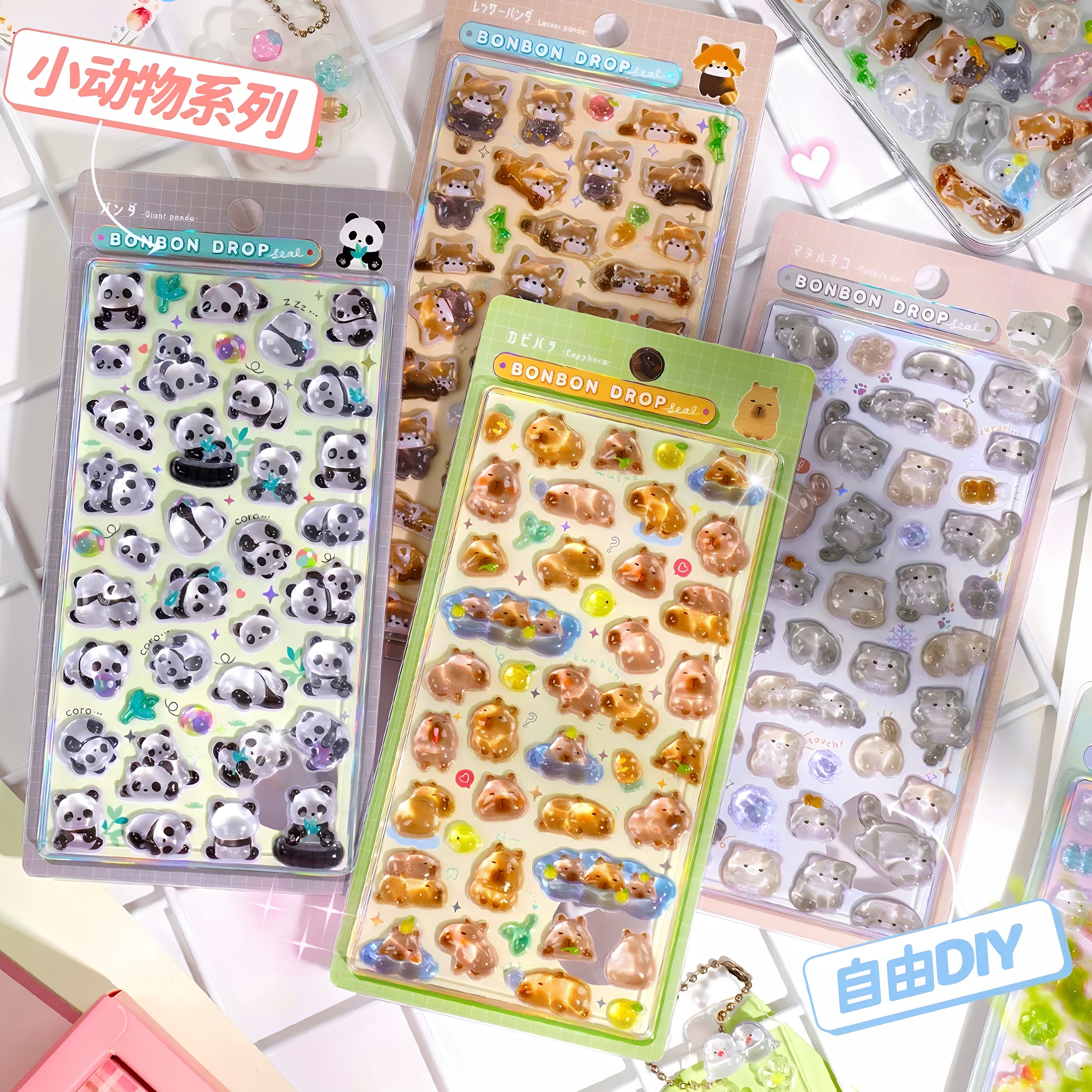 日系BONBON DROP立体浮雕贴纸3D卡通鲸头鹳文鸟熊猫卡皮巴拉贴画