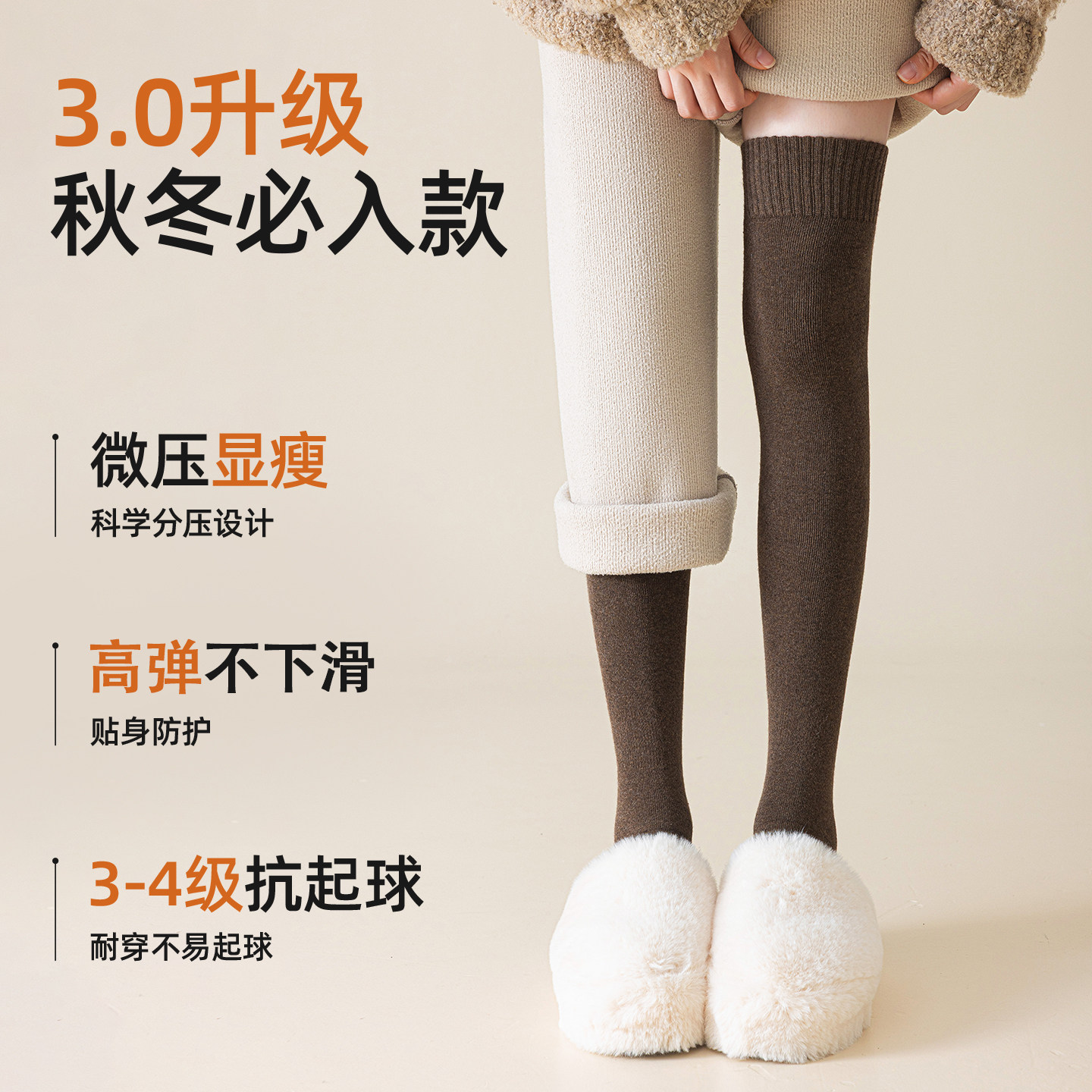 过膝袜子女秋冬羊毛长筒袜加厚保暖护膝大腿袜纯棉压力显瘦高筒袜