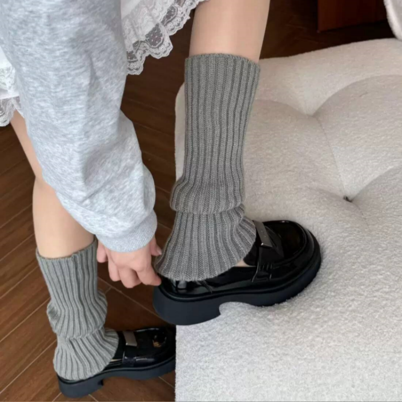 秋冬加厚针织jk袜套堆堆袜袜子女白色小腿袜保暖洛丽塔y2k袜灰色