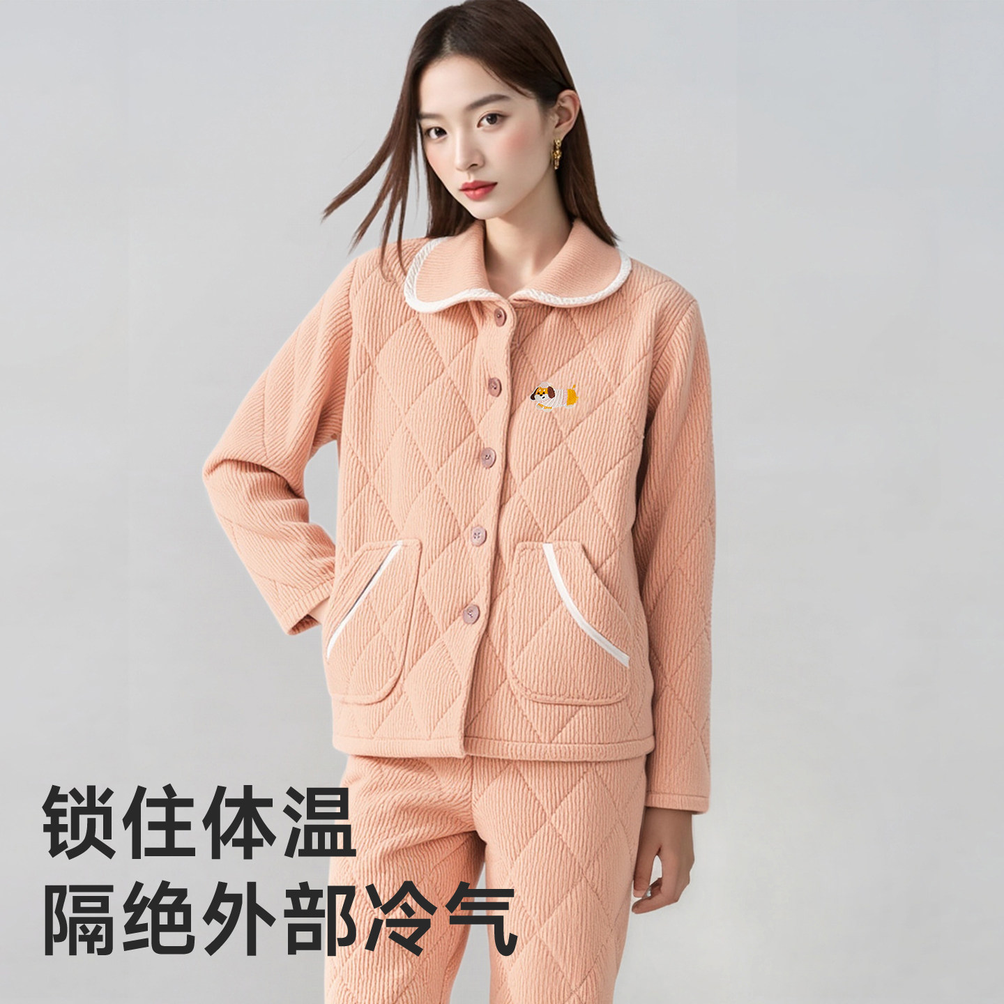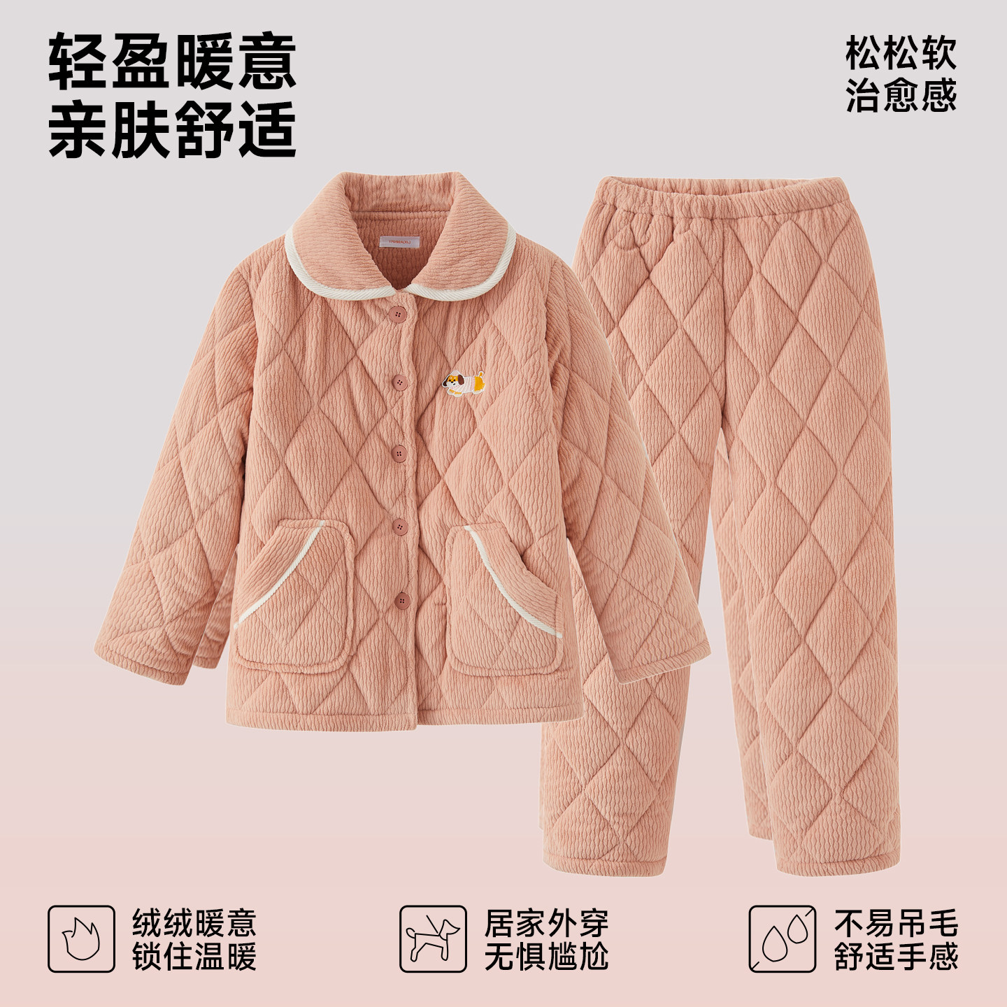 GOSO女士夹棉家居服2025冬新款舒适加厚保暖夹棉袄睡衣套装可外穿