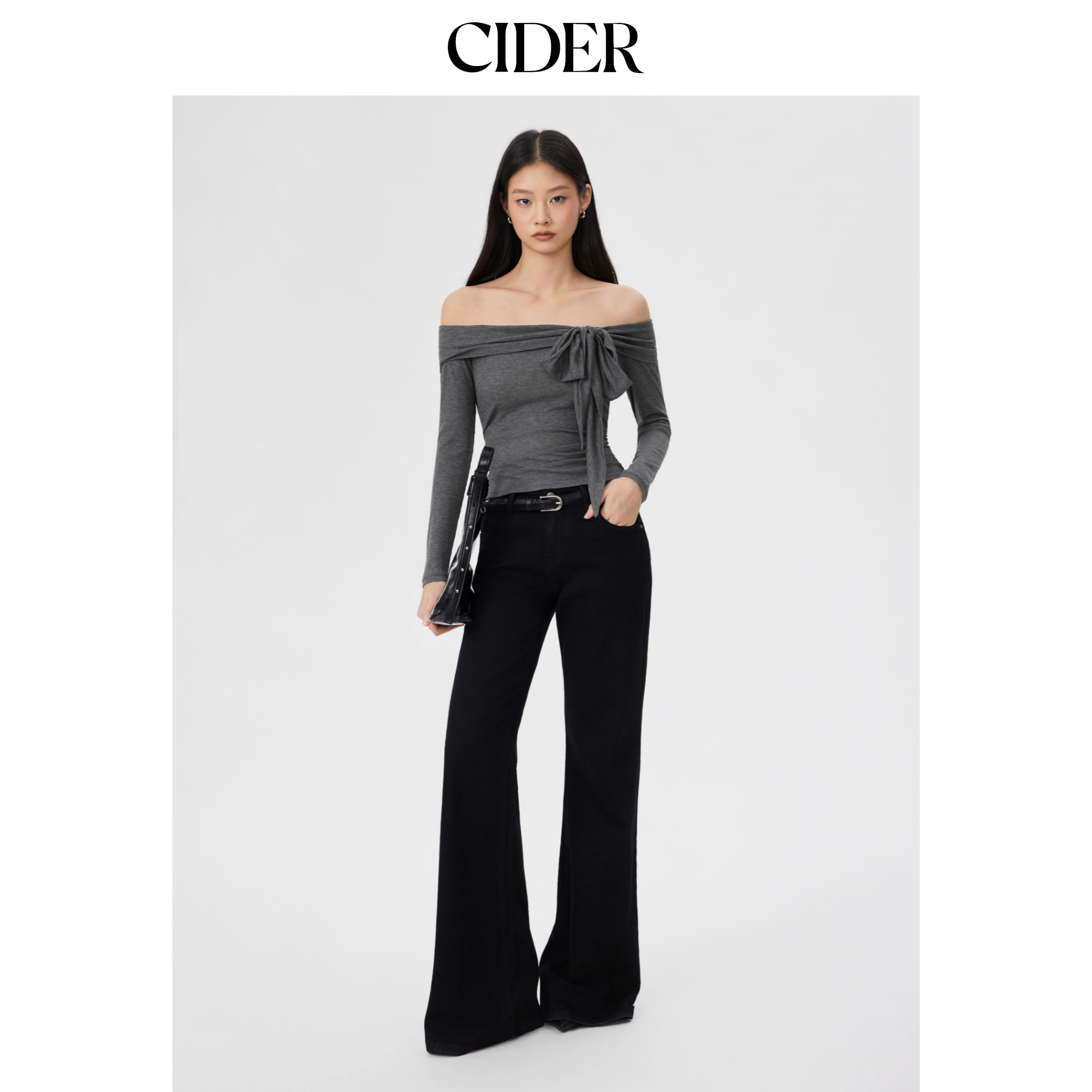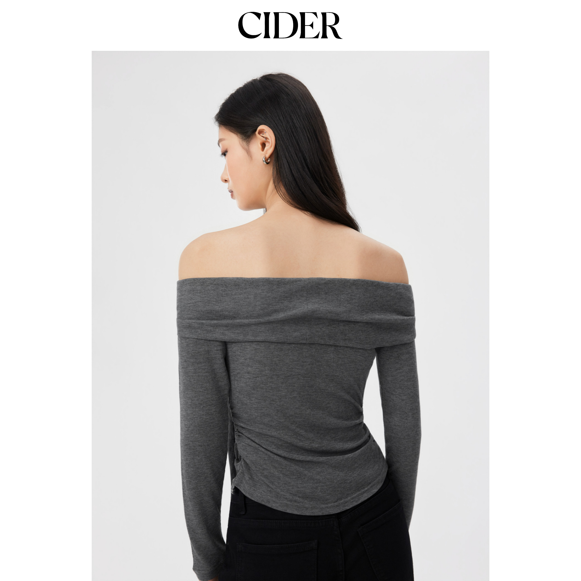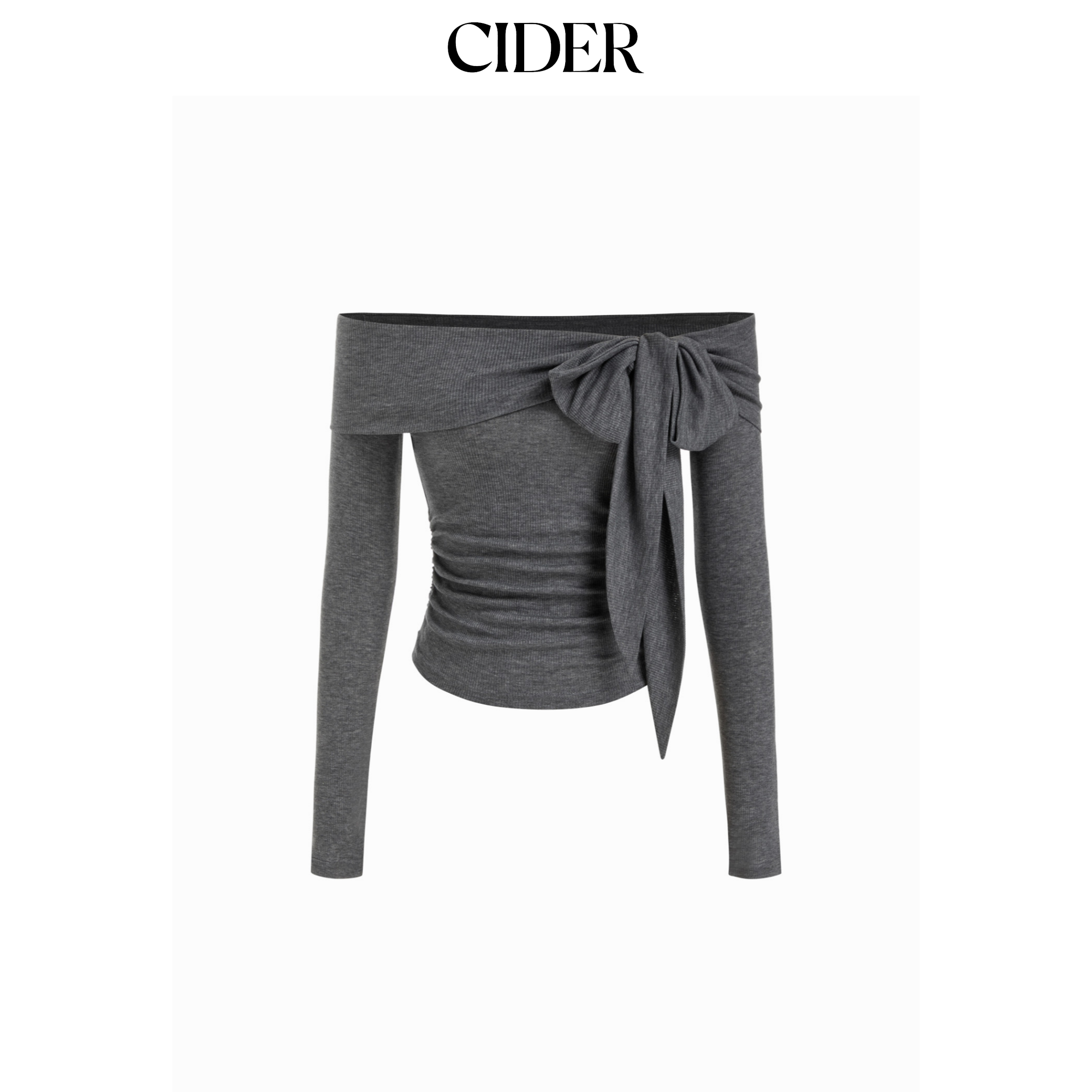 CIDER羊毛混纺露肩蝴蝶结褶皱上衣115117589