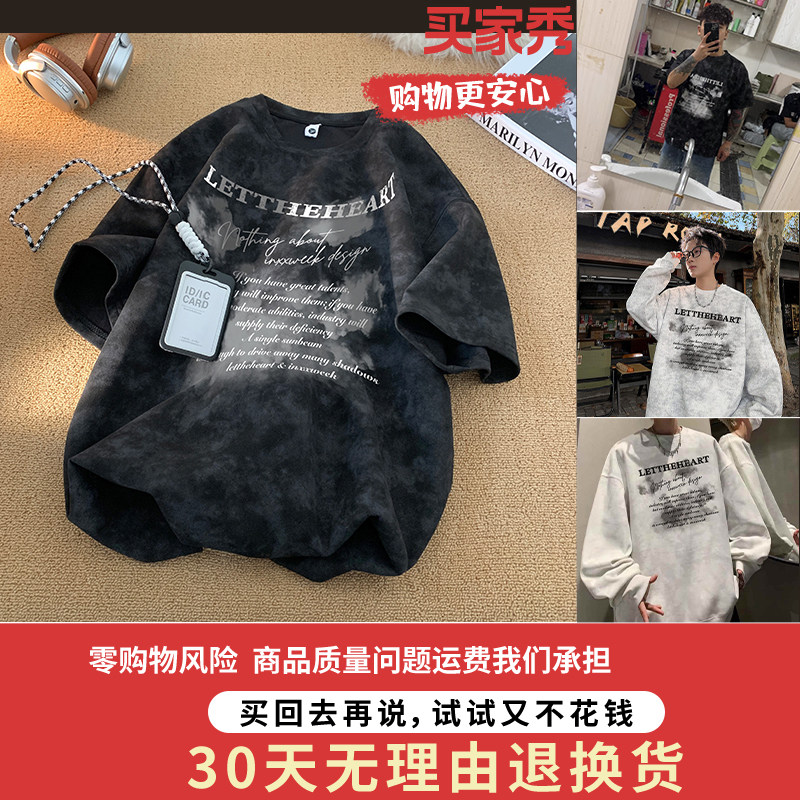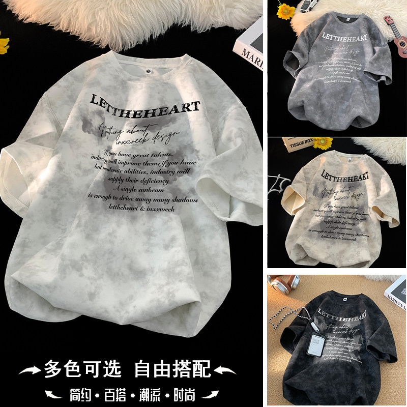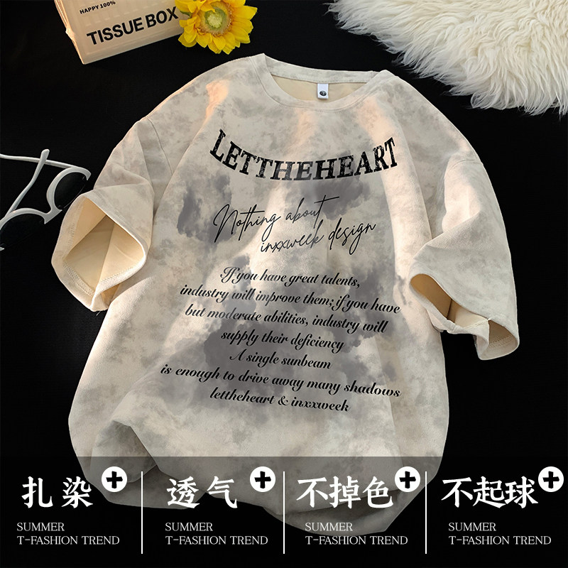 美式扎染短袖男t恤高街潮牌宽松高级2025夏季新款半袖麂皮绒上衣