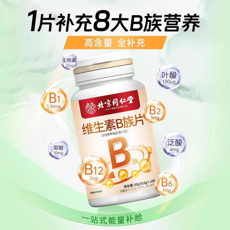 北京同仁堂维生素b族片复合维生素b1b2b6b12男女生熬夜补钙补充vb