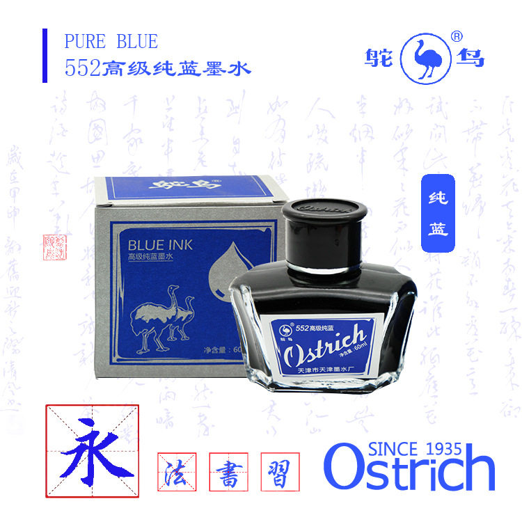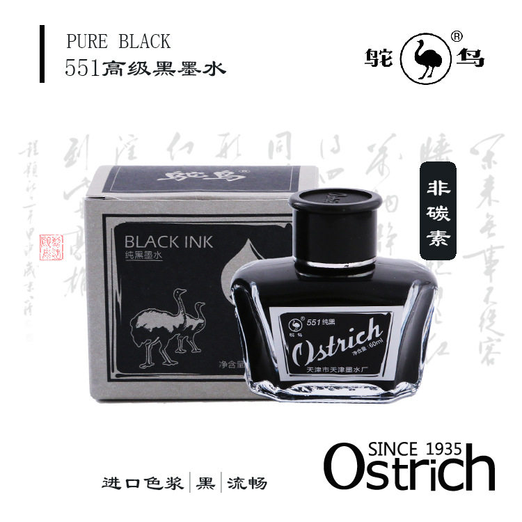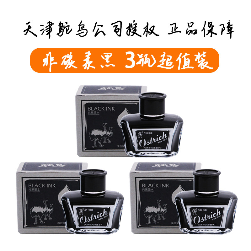 鸵鸟黑色纯蓝蓝黑红色书写练字551 555非碳素墨水碳素钢笔墨水正