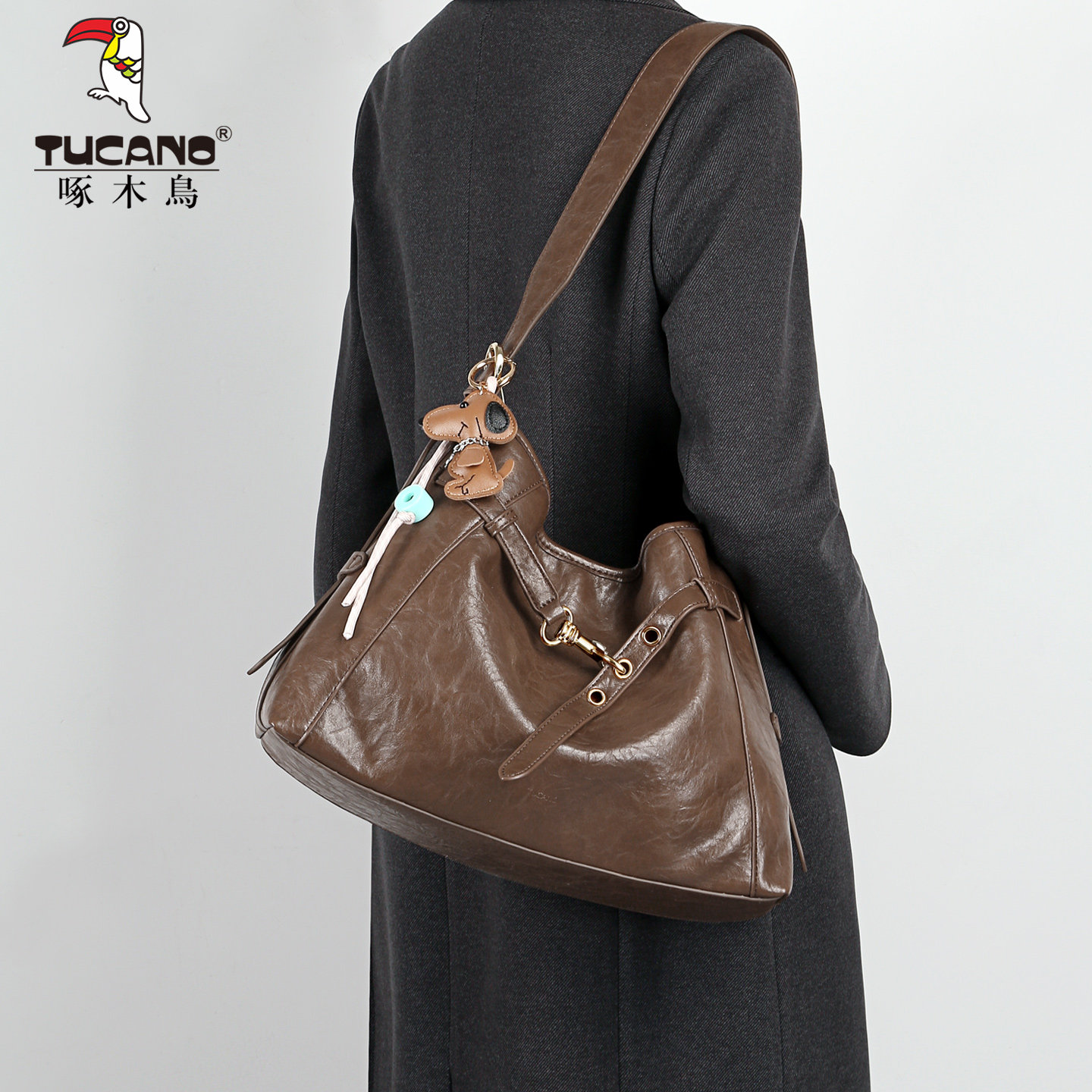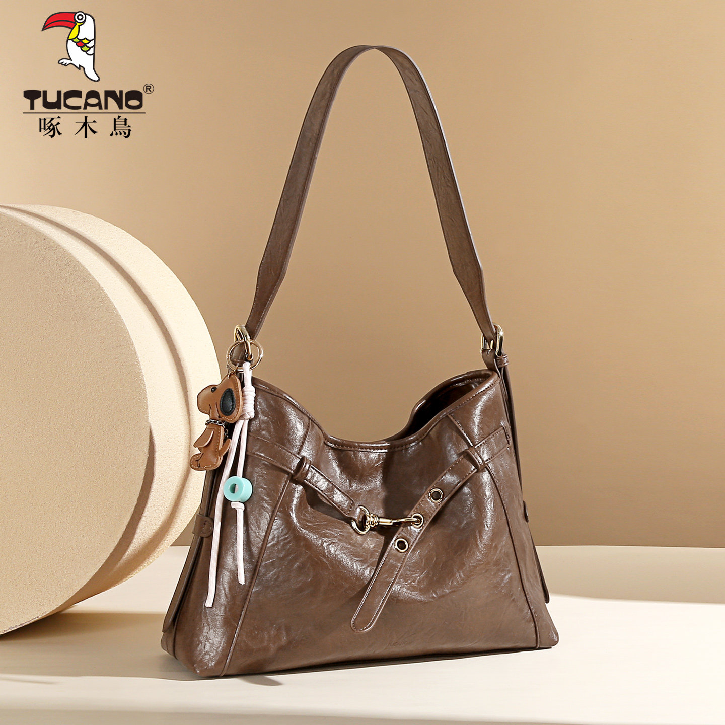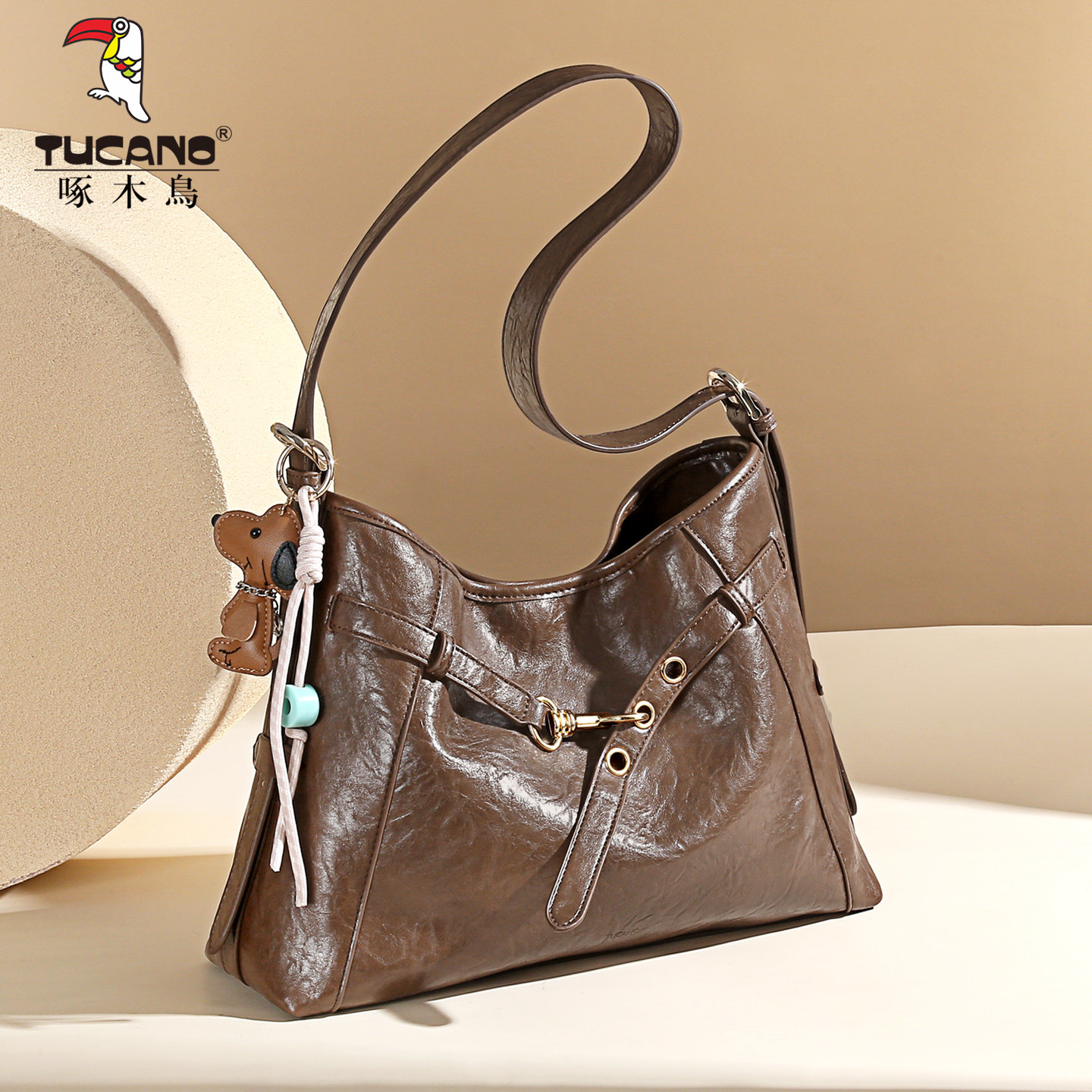 啄木鸟真皮女包2025新款高级感腋下包复古时尚hobo流浪包斜挎单肩