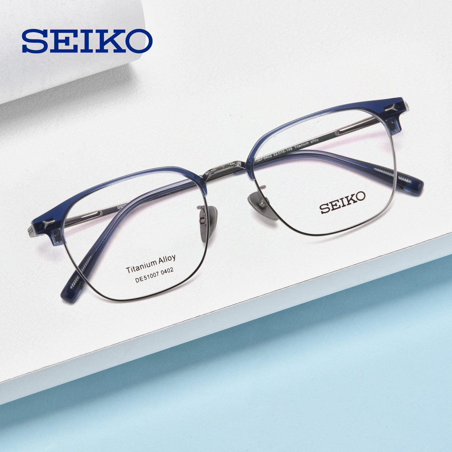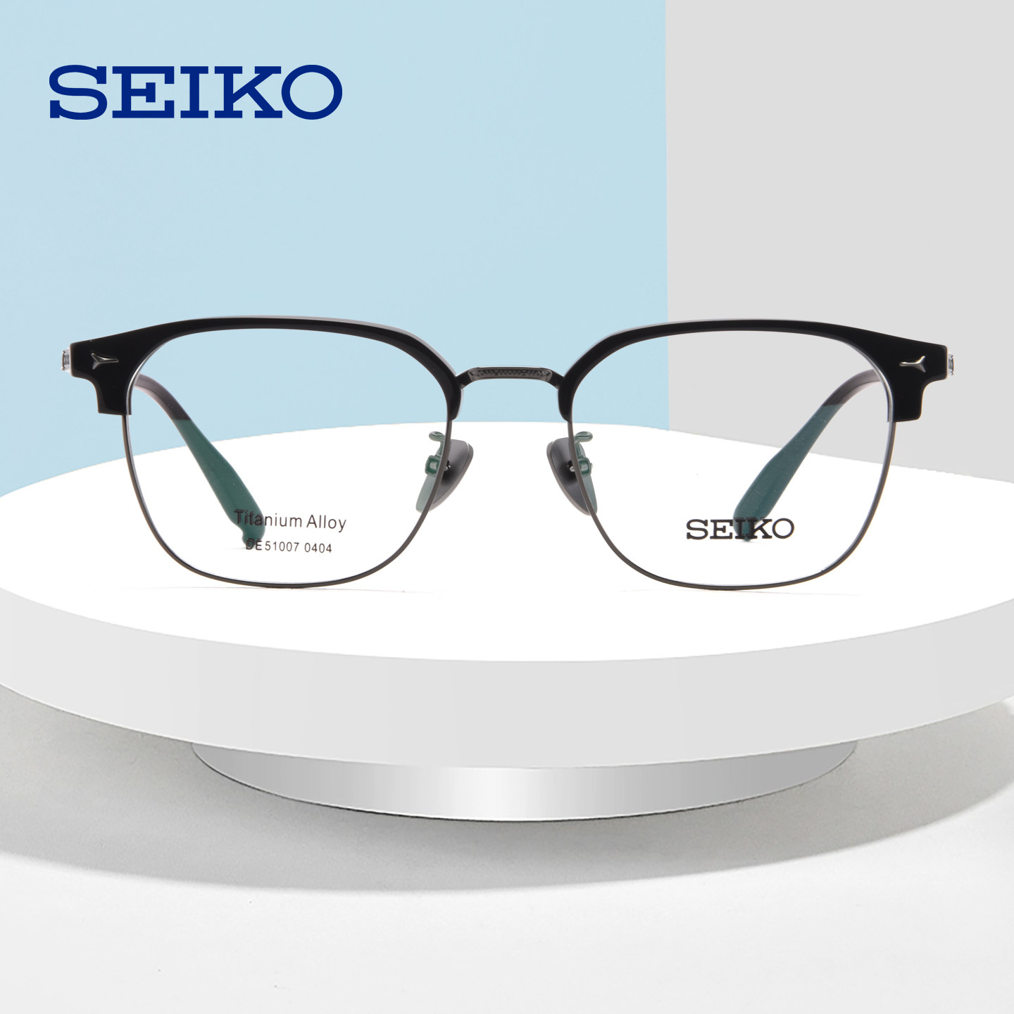 SEIKO精工板材钛合金近视眼镜框男百搭休闲方形全框镜架女DE51007