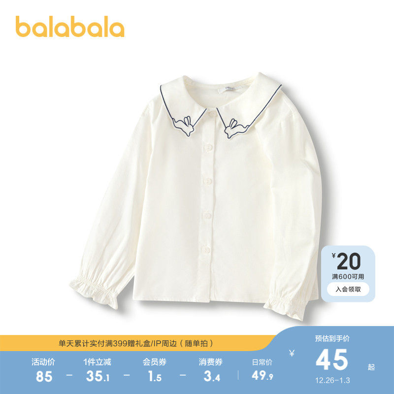巴拉巴拉儿童长袖衬衫白衬衣女童装秋季可爱绣花翻领上衣时尚百搭