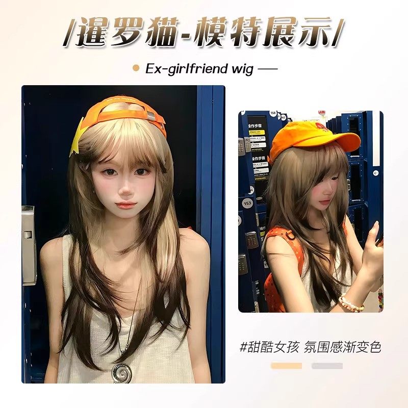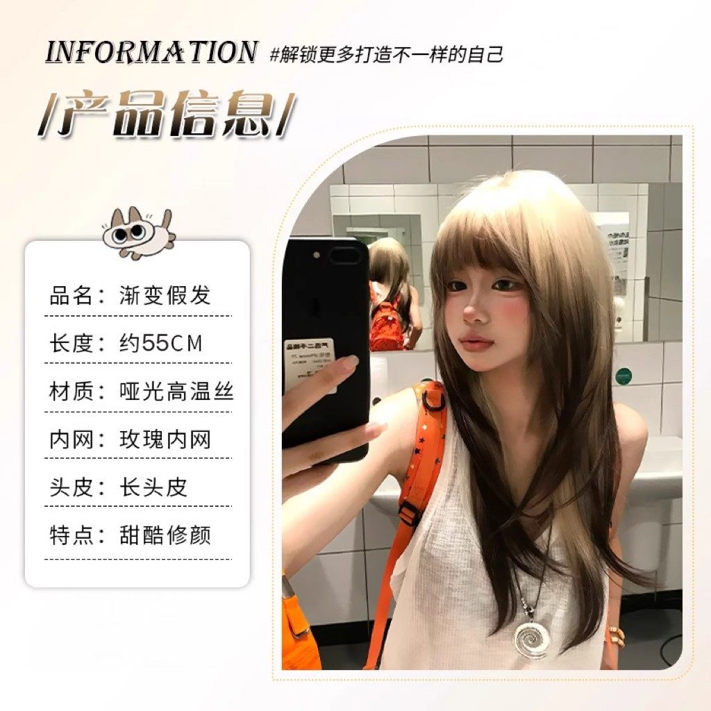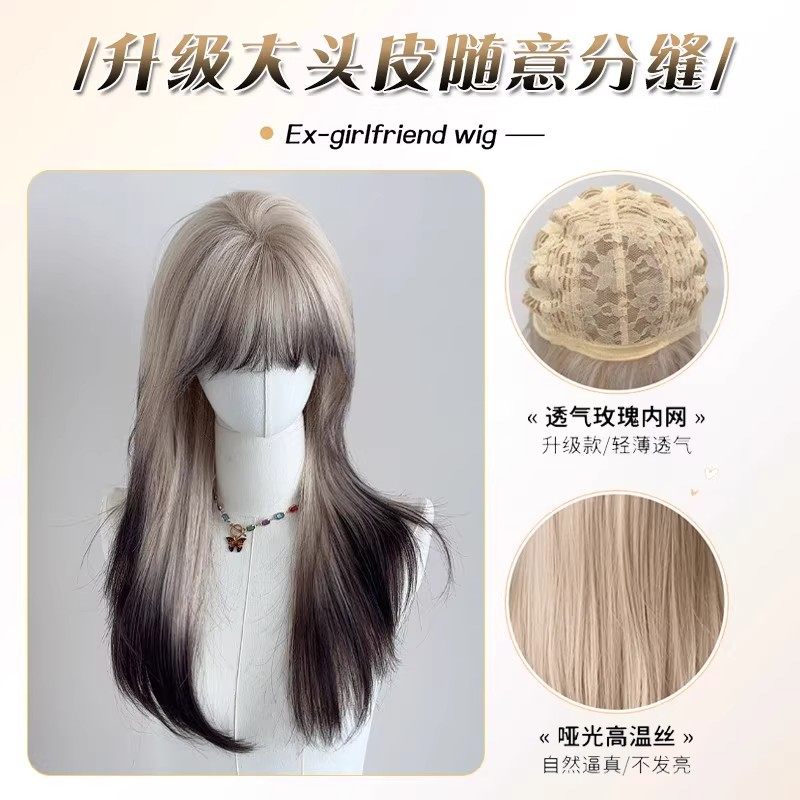 白金假发女长发日常暹罗猫渐变黑巴黎画染cos全头套刘海发型逼真