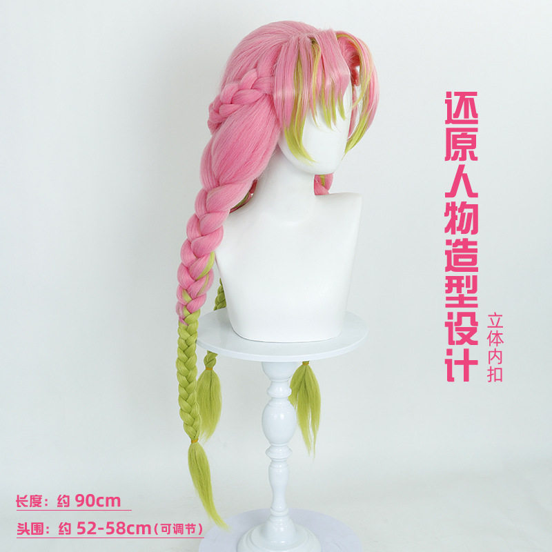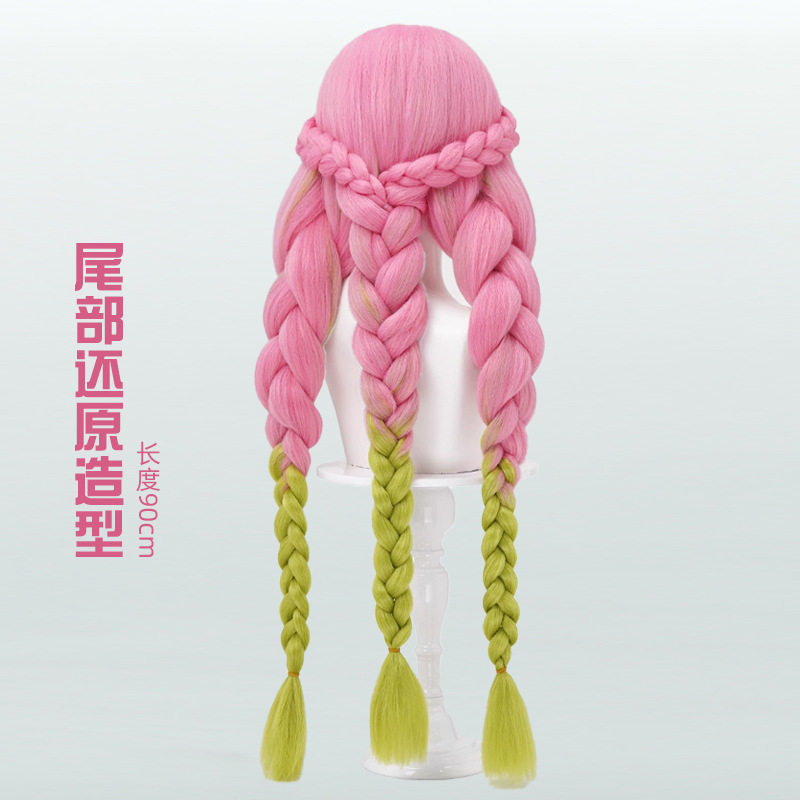 玫瑰网】鬼灭之刃 甘露寺蜜璃cos假发 lolita粉色假毛三股辫长发