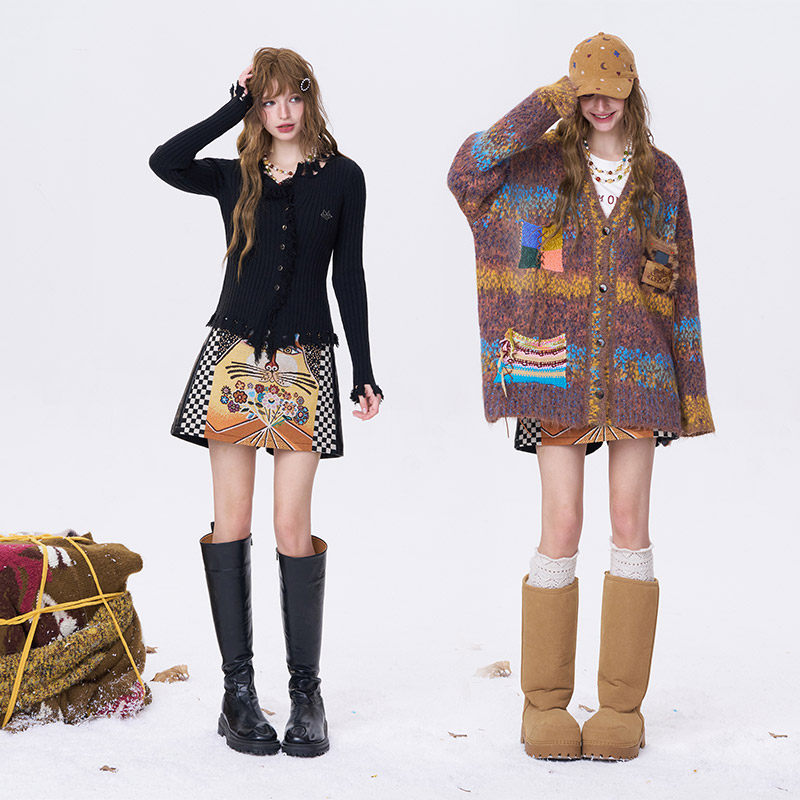 BANANA BABY2025年秋冬新款提花针织女日系碎花雪纺长款半身裙
