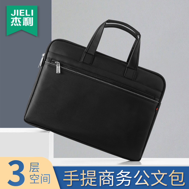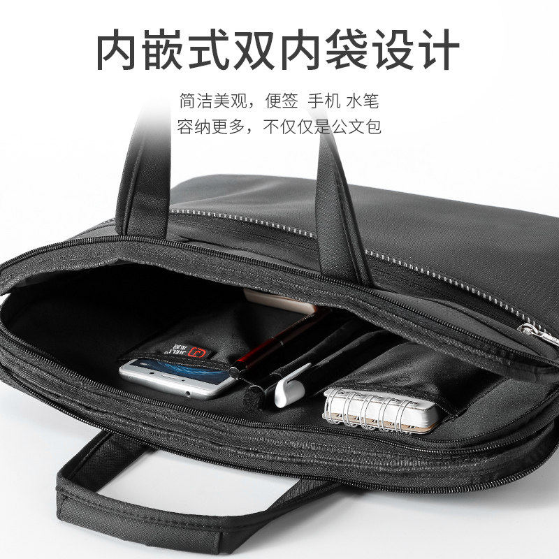 杰利55141 三层拉链文件包a4定制商务高档男包手提包帆布单肩包斜