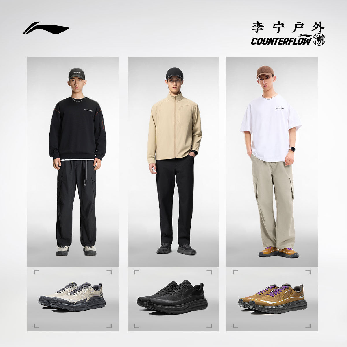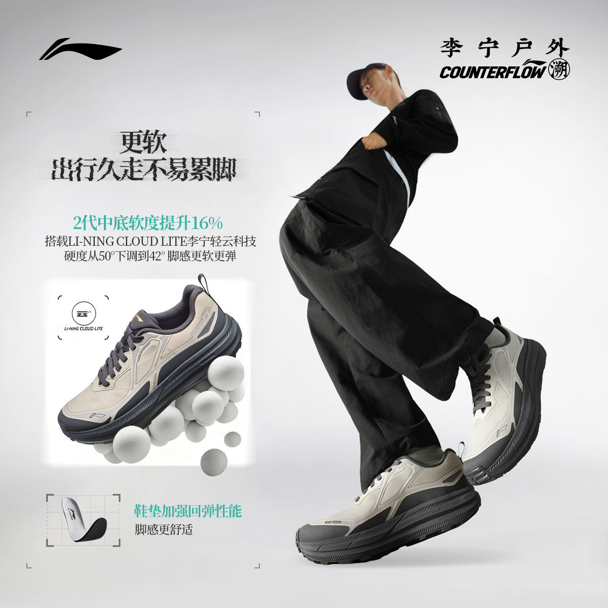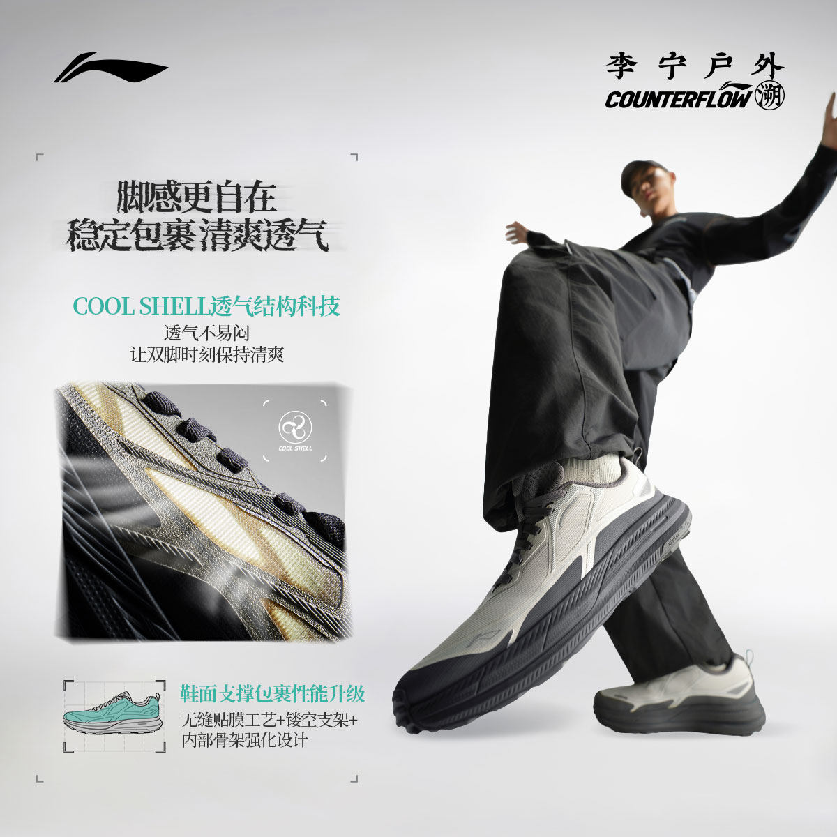 李宁户外CF溯|行际2休闲鞋男士防滑减震轻便透气低帮徒步运动鞋