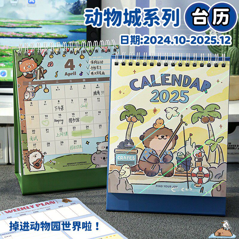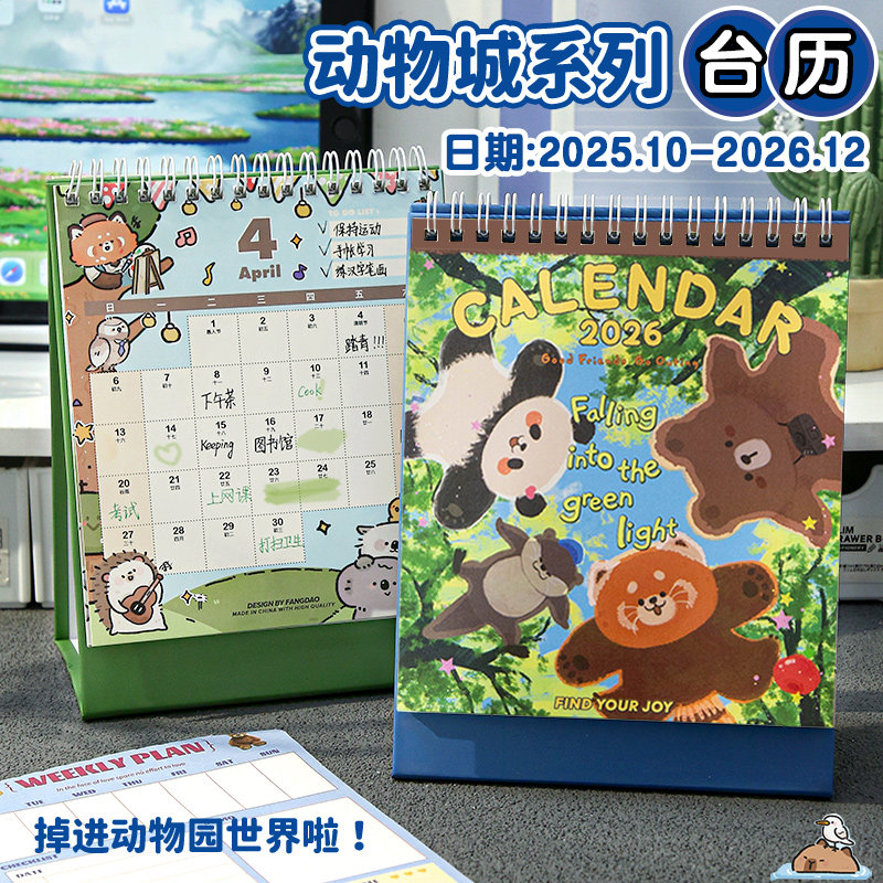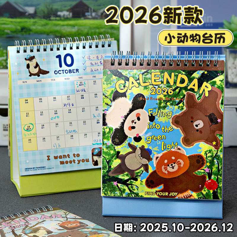 2026年新款日历2025到2026新年台式创意桌面摆件高颜值月历年历小动物郊游可爱小熊猫记事小台历办公室26年