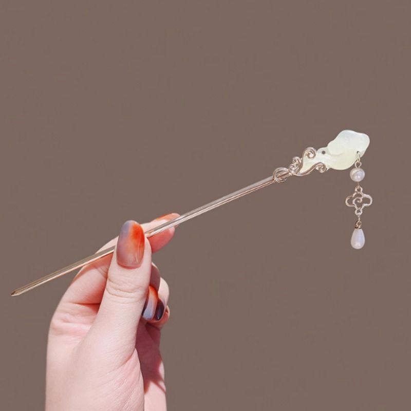 祥云玉如意古风流苏发簪女步摇高级感后脑勺盘发簪子新中式发钗