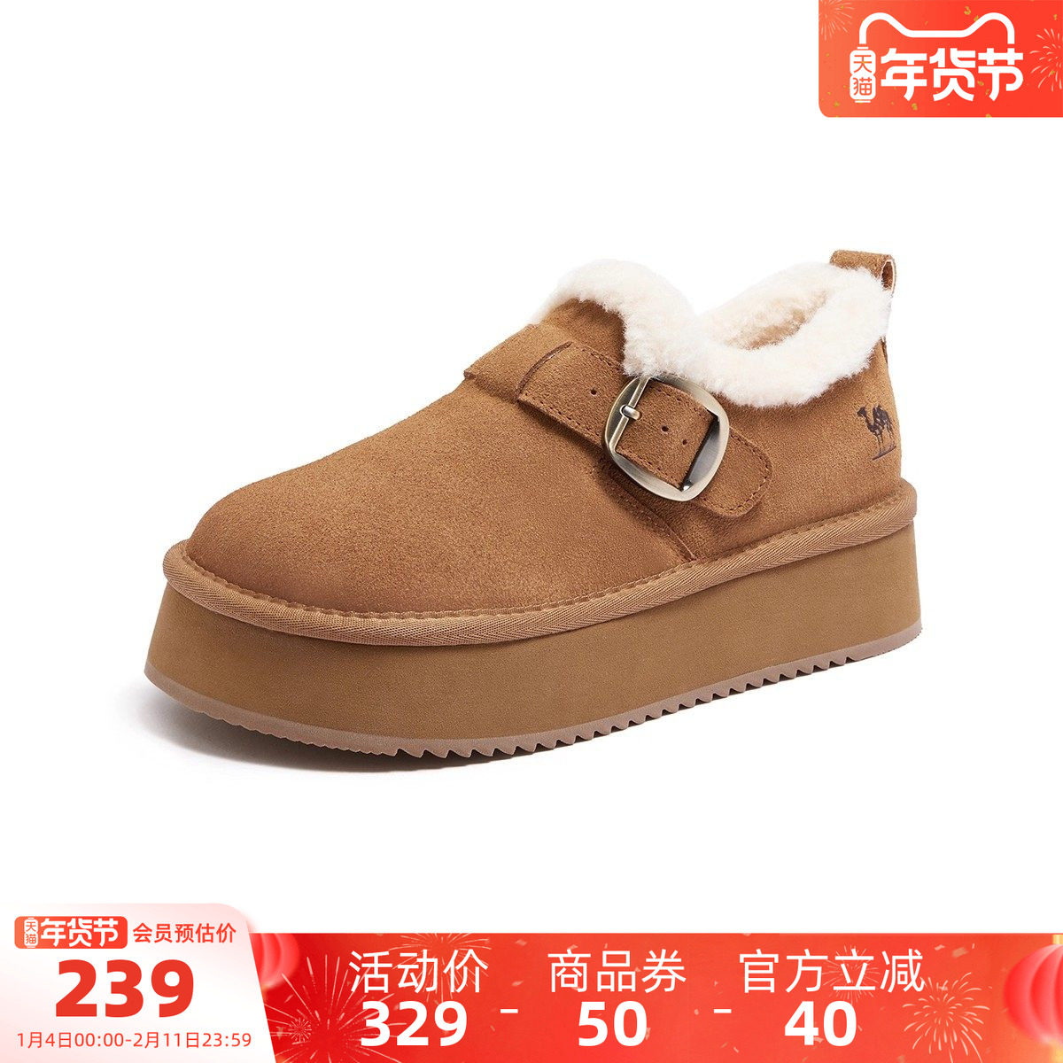 骆驼女鞋2025冬季新款厚底加绒保暖雪地靴毛毛鞋休闲勃肯鞋棉鞋女