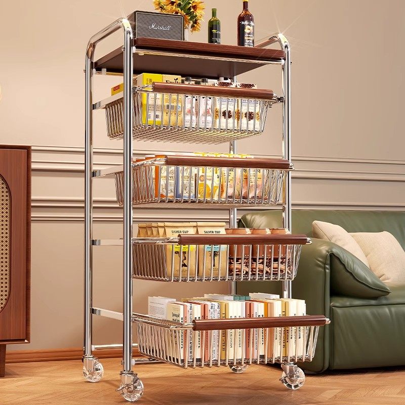 小推车置物架厨房落地多层客厅移动书架子婴儿卧室零食收纳储物架