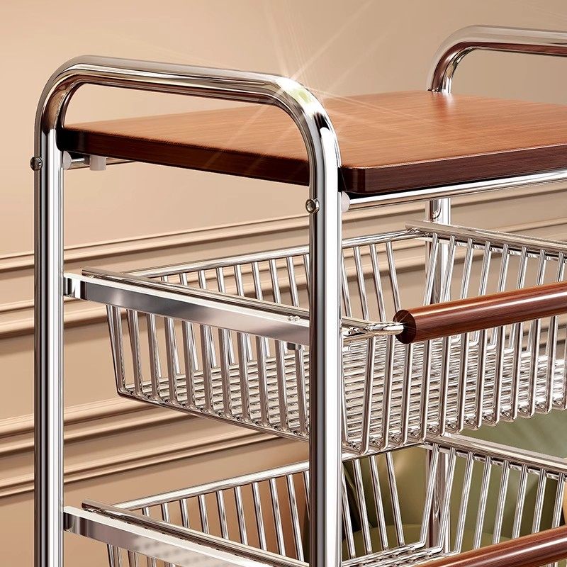 零食小推车中古置物架客厅落地移动厨房收纳多功能家用餐边柜金属