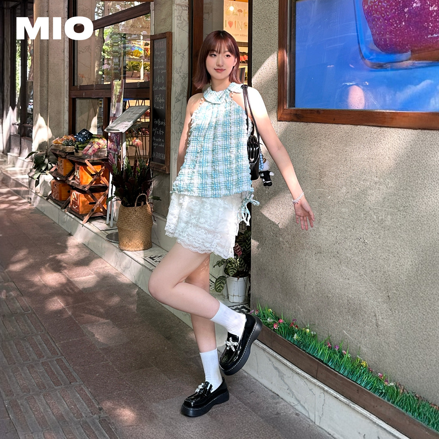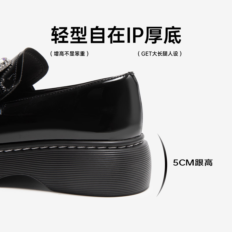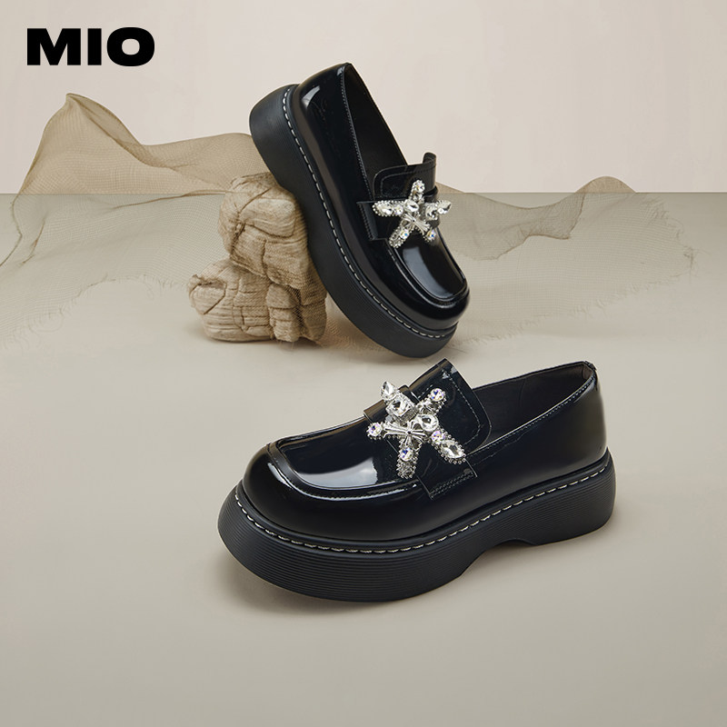 MIO米奥秋季圆头学院厚底乐福鞋复古钻饰元素显高舒适女鞋
